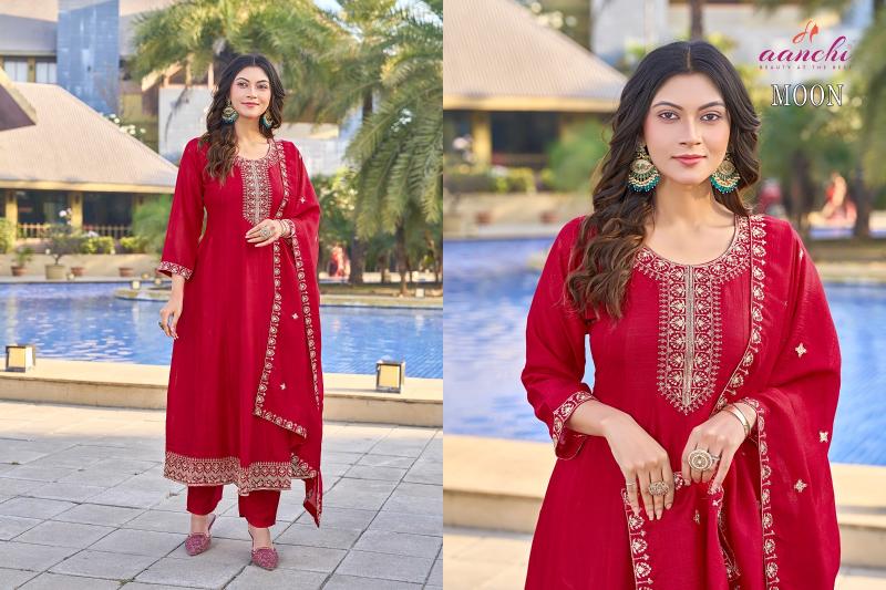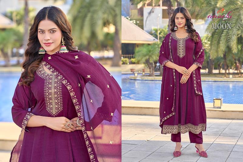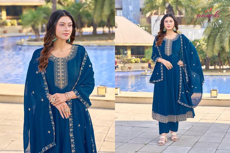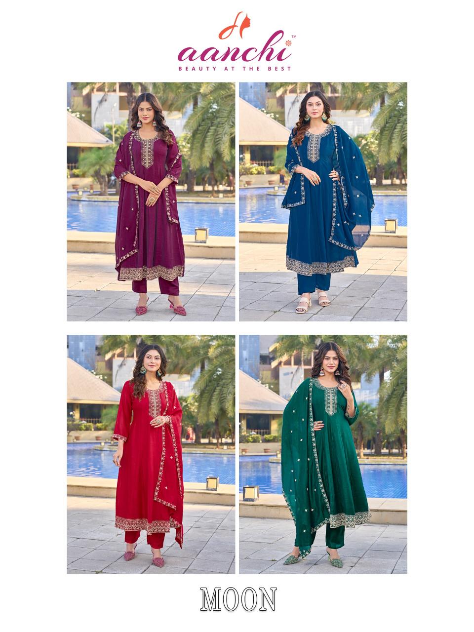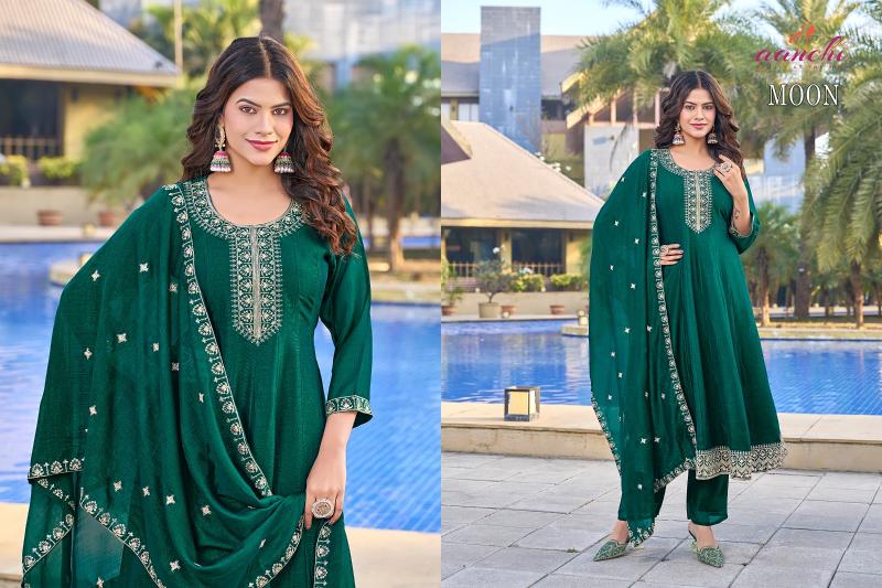 Looking for moon by aanchi readymade vichitra party wear suits for women Full Catalouge at Best Price? Buy Now moon by aanchi readymade vichitra party wear suits for women at Wholesale Rate of Rs 4260 with Total 4 Pcs from authroized dealer and supplier of Aanchi Brand. Cost of Each piece is just only Rs 1065 which is very low and affordable price to resale the product in your retail store. rrgandhi is Surat based Wholesale Supplier & Dealer of Aanchi Brand. Click on Brand name to Know more about Brand's products.