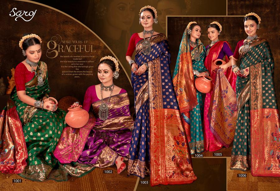 Looking for Morni silk Saroj Vol.2 Soft Paithani silk Full Catalouge at Best Price? Buy Now Morni silk Saroj Vol.2 Soft Paithani silk at Wholesale Rate of Rs 2610 with Total 6 Pcs from authroized dealer and supplier of Saroj Textiles Brand. Cost of Each piece is just only Rs 435 which is very low and affordable price to resale the product in your retail store. rrgandhi is Surat based Wholesale Supplier & Dealer of Saroj Textiles Brand. Click on Brand name to Know more about Brand's products.