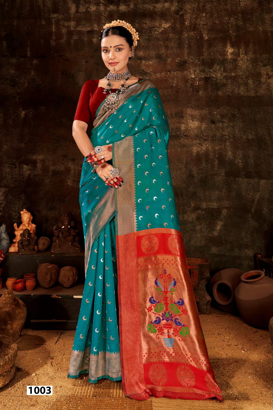 Looking for Morni silk Saroj Vol.5 Soft Paithani silk Full Catalouge at Best Price? Buy Now Morni silk Saroj Vol.5 Soft Paithani silk at Wholesale Rate of Rs 2610 with Total 6 Pcs from authroized dealer and supplier of Saroj Textiles Brand. Cost of Each piece is just only Rs 435 which is very low and affordable price to resale the product in your retail store. rrgandhi is Surat based Wholesale Supplier & Dealer of Saroj Textiles Brand. Click on Brand name to Know more about Brand's products.