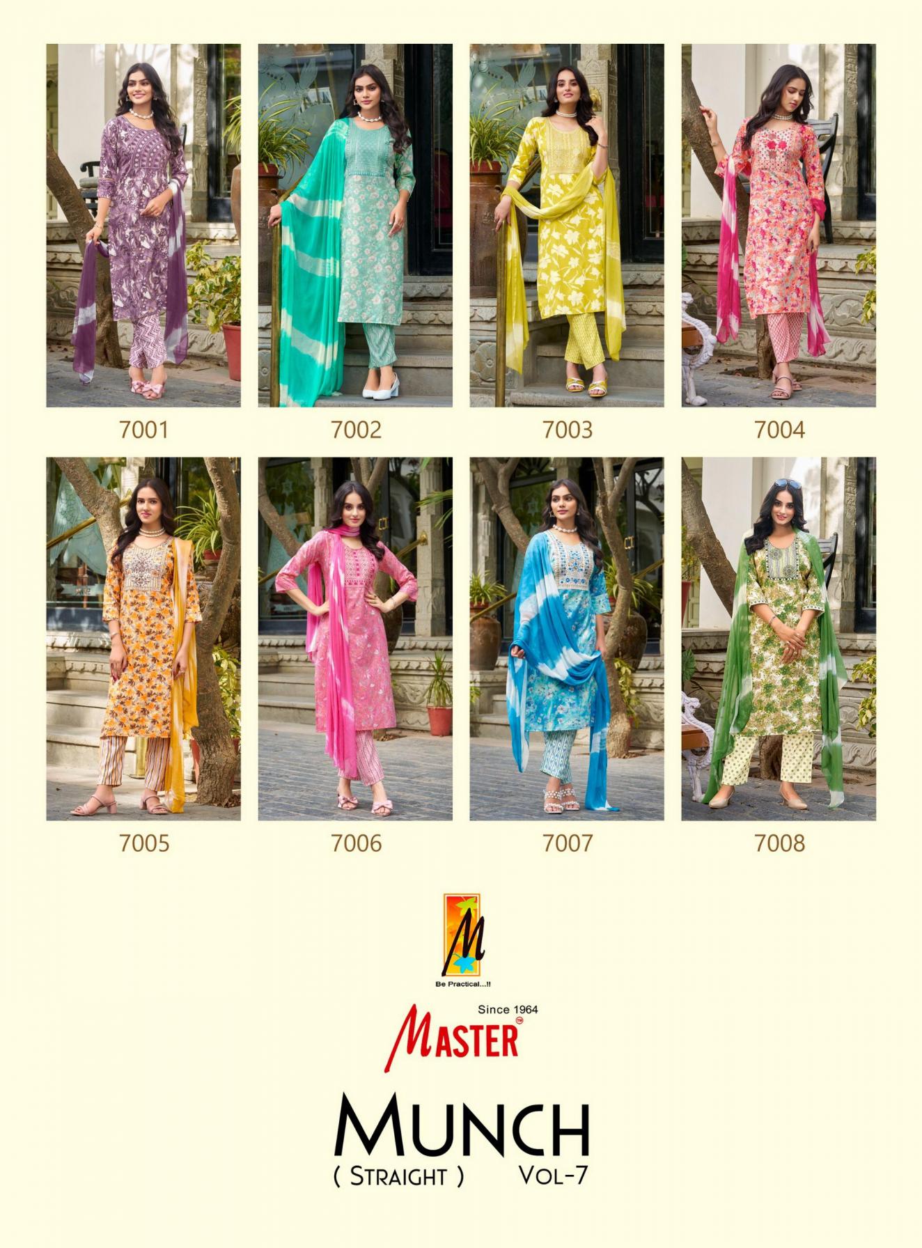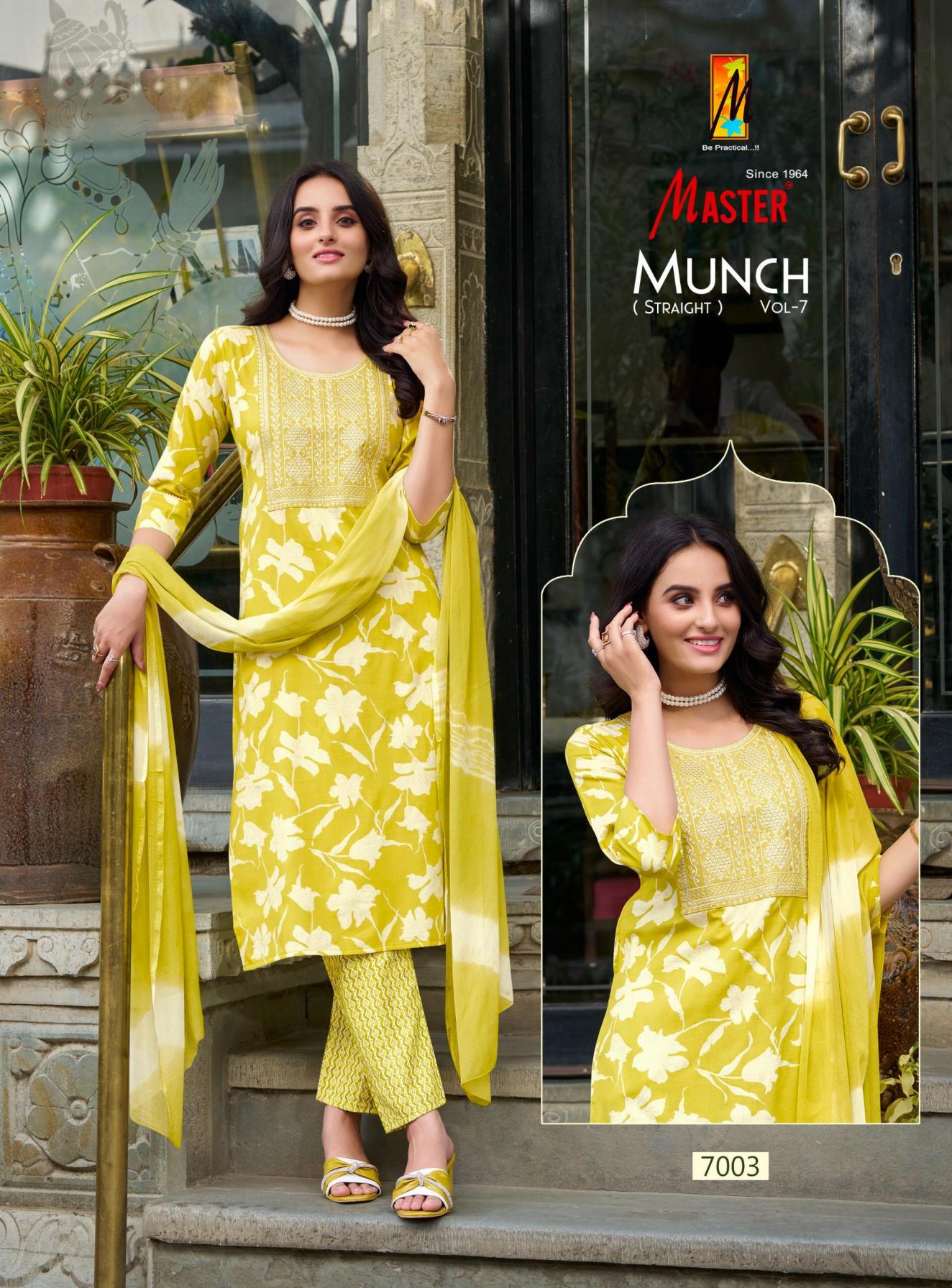 Looking for MUNCH VOL 7 BY MASTER CAPSULE PRINT FULLY STITCH CASUAL 3PCS DRESS Full Catalouge at Best Price? Buy Now MUNCH VOL 7 BY MASTER CAPSULE PRINT FULLY STITCH CASUAL 3PCS DRESS at Wholesale Rate of Rs 4080 with Total 8 Pcs from authroized dealer and supplier of Master Kurti Brand. Cost of Each piece is just only Rs 510 which is very low and affordable price to resale the product in your retail store. rrgandhi is Surat based Wholesale Supplier & Dealer of Master Kurti Brand. Click on Brand name to Know more about Brand's products.