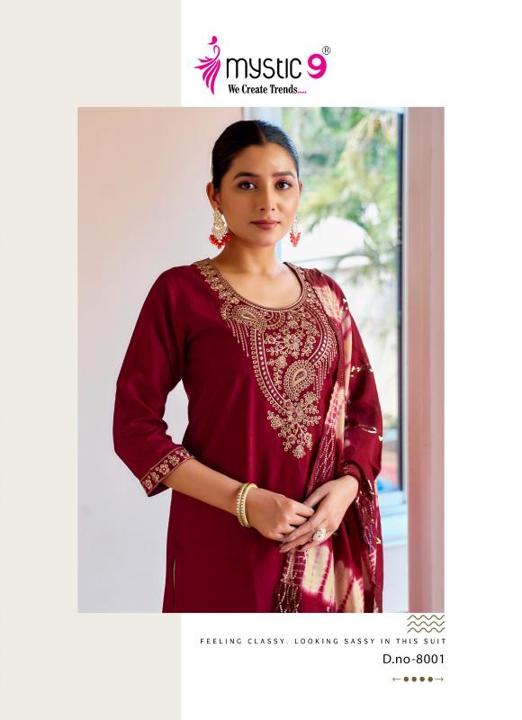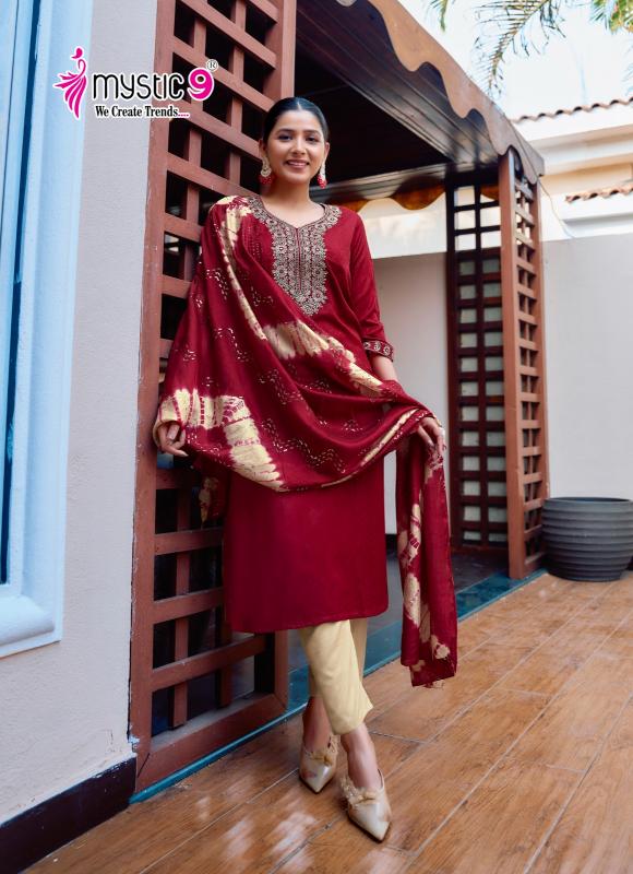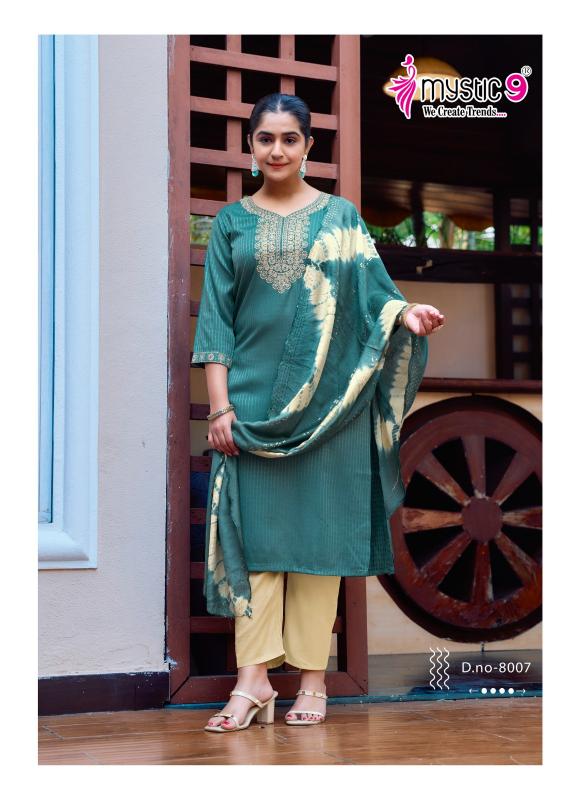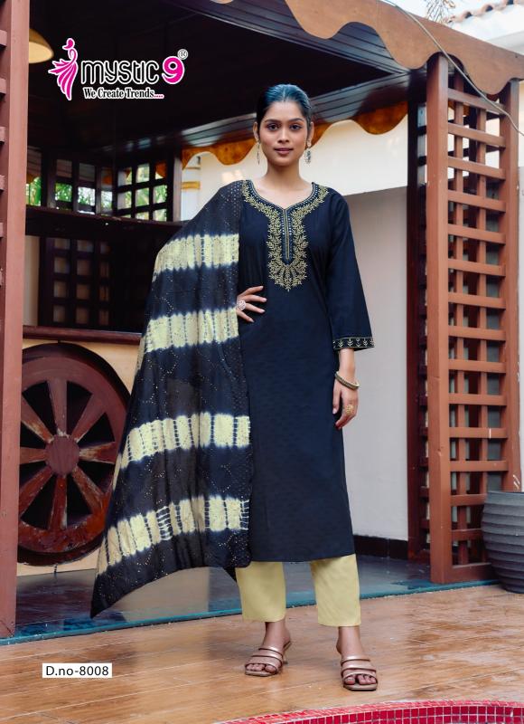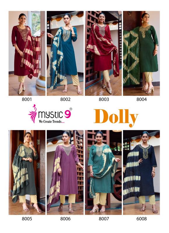 Looking for mystic9 dolly vol 8 readymade pretty look rayon dobby suits online Full Catalouge at Best Price? Buy Now mystic9 dolly vol 8 readymade pretty look rayon dobby suits online at Wholesale Rate of Rs 5480 with Total 8 Pcs from authroized dealer and supplier of Mystic9 Brand. Cost of Each piece is just only Rs 685 which is very low and affordable price to resale the product in your retail store. rrgandhi is Surat based Wholesale Supplier & Dealer of Mystic9 Brand. Click on Brand name to Know more about Brand's products.