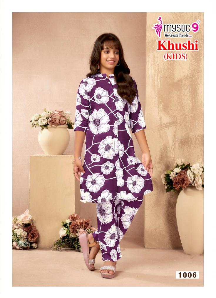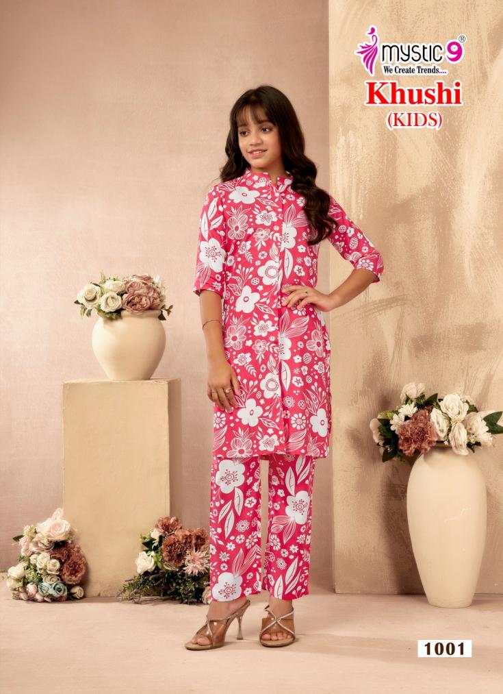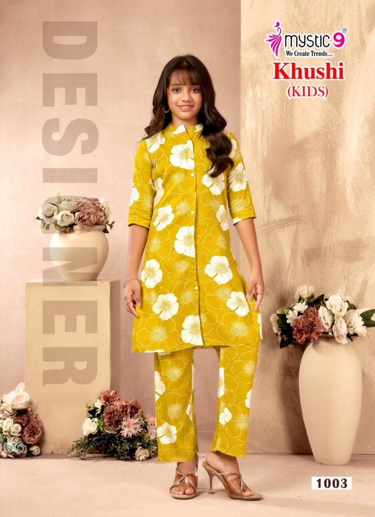 Looking for MYSTIC9 KHUSHI KIDS VOL 1 FULL STITCH VISCOSE CLASSIC COMBO KIDS CO-ORD SET Full Catalouge at Best Price? Buy Now MYSTIC9 KHUSHI KIDS VOL 1 FULL STITCH VISCOSE CLASSIC COMBO KIDS CO-ORD SET at Wholesale Rate of Rs 14200 with Total 40 Pcs from authroized dealer and supplier of Mystic9 Brand. Cost of Each piece is just only Rs 355 which is very low and affordable price to resale the product in your retail store. rrgandhi is Surat based Wholesale Supplier & Dealer of Mystic9 Brand. Click on Brand name to Know more about Brand's products.