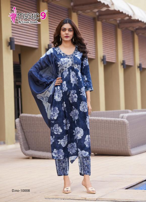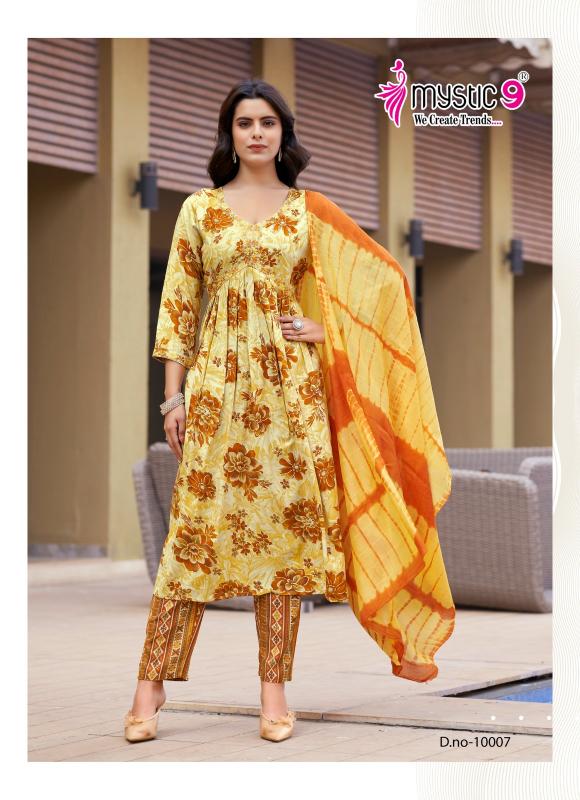 Looking for mystic9 pooja vol 10 hit design rayon classic suit for womens Full Catalouge at Best Price? Buy Now mystic9 pooja vol 10 hit design rayon classic suit for womens at Wholesale Rate of Rs 5200 with Total 8 Pcs from authroized dealer and supplier of Mystic9 Brand. Cost of Each piece is just only Rs 650 which is very low and affordable price to resale the product in your retail store. rrgandhi is Surat based Wholesale Supplier & Dealer of Mystic9 Brand. Click on Brand name to Know more about Brand's products.