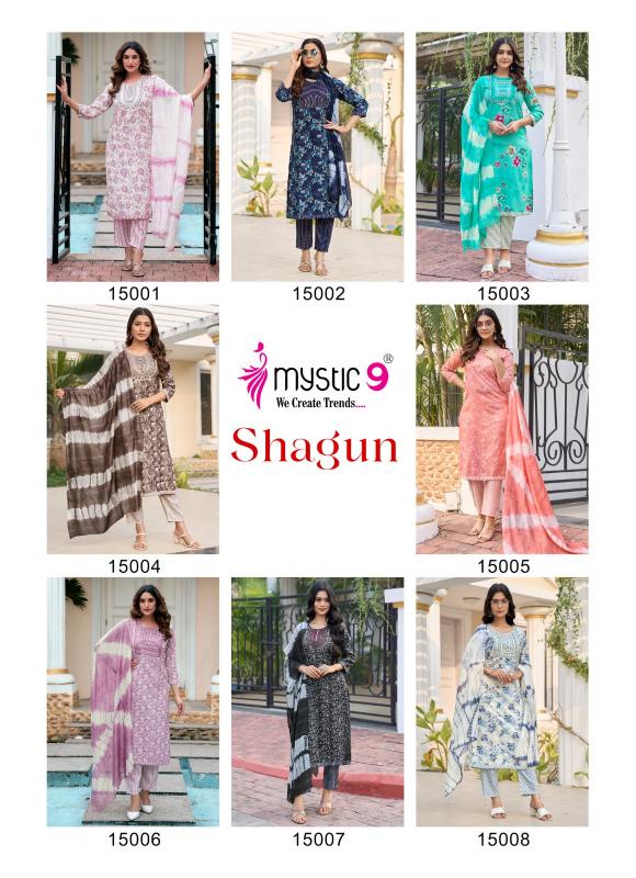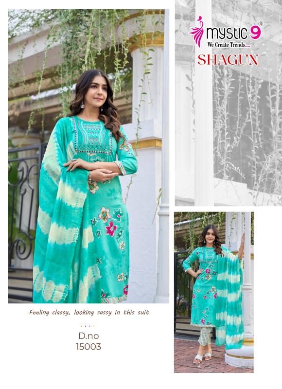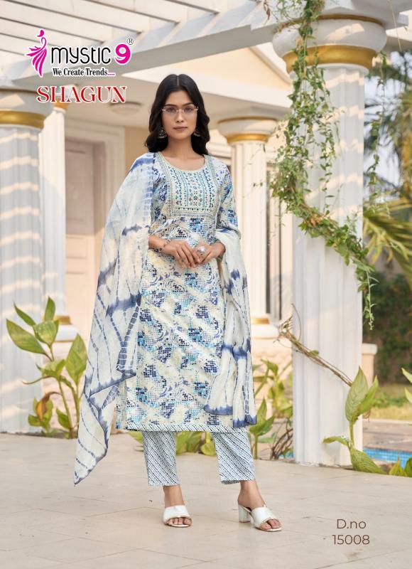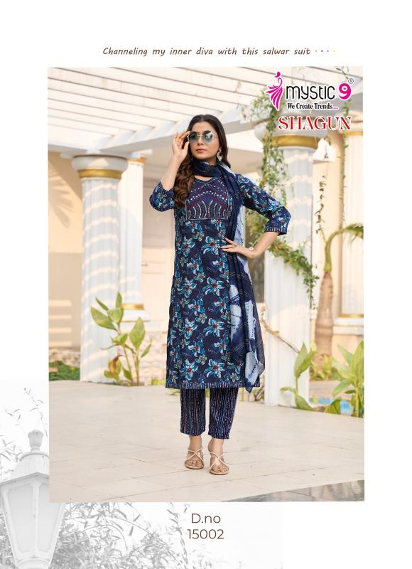 Looking for mystic9 shagun vol 15 full stitch rayon capsule print salwar kameez Full Catalouge at Best Price? Buy Now mystic9 shagun vol 15 full stitch rayon capsule print salwar kameez at Wholesale Rate of Rs 3880 with Total 8 Pcs from authroized dealer and supplier of Mystic9 Brand. Cost of Each piece is just only Rs 485 which is very low and affordable price to resale the product in your retail store. rrgandhi is Surat based Wholesale Supplier & Dealer of Mystic9 Brand. Click on Brand name to Know more about Brand's products.