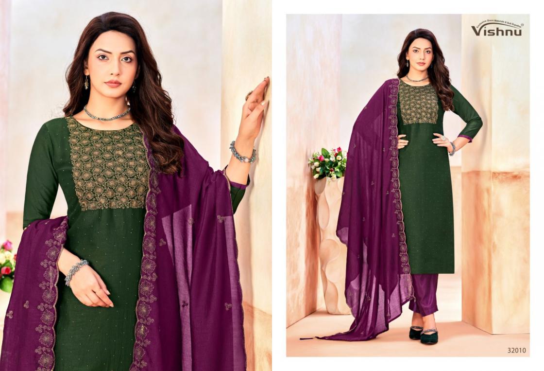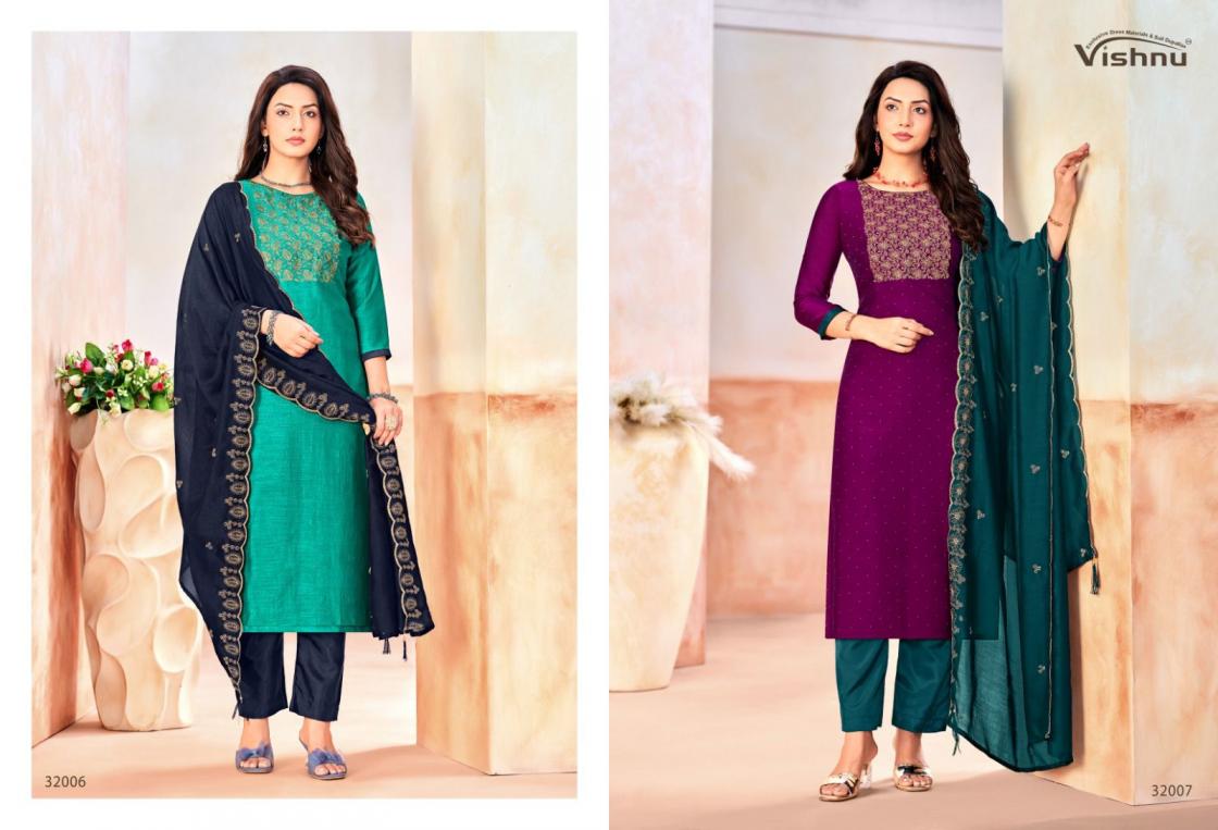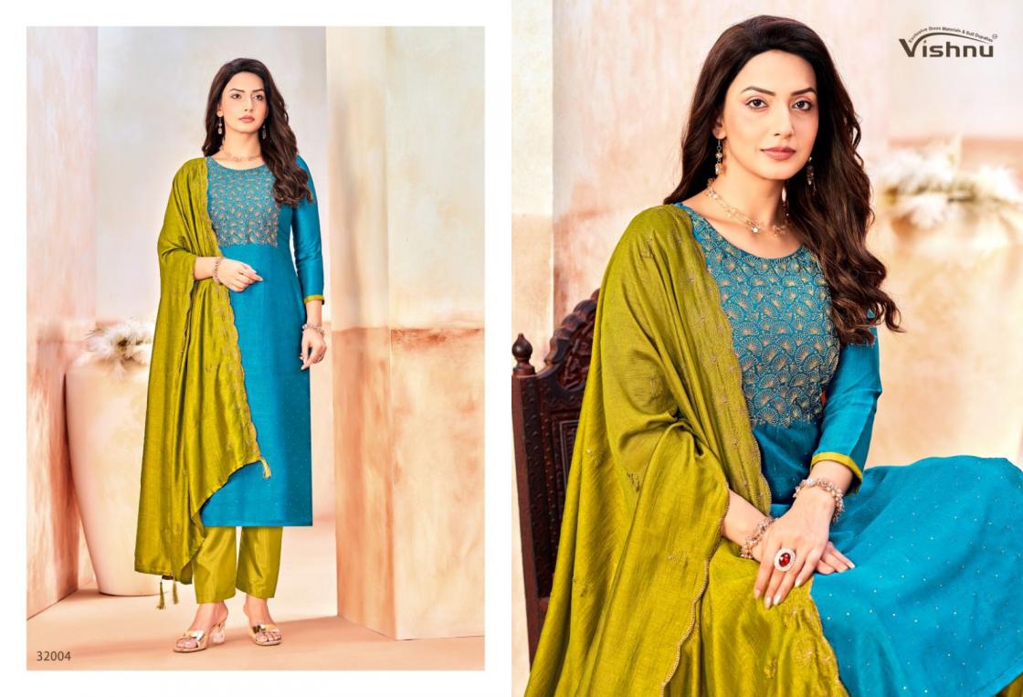 Looking for NAAIRA VOL 5 BY VISHNU IMPEX VICHITRA BOOMING SALWAR KAMEEZ Full Catalouge at Best Price? Buy Now NAAIRA VOL 5 BY VISHNU IMPEX VICHITRA BOOMING SALWAR KAMEEZ at Wholesale Rate of Rs 8340 with Total 12 Pcs from authroized dealer and supplier of Vishnu Brand. Cost of Each piece is just only Rs 695 which is very low and affordable price to resale the product in your retail store. rrgandhi is Surat based Wholesale Supplier & Dealer of Vishnu Brand. Click on Brand name to Know more about Brand's products.