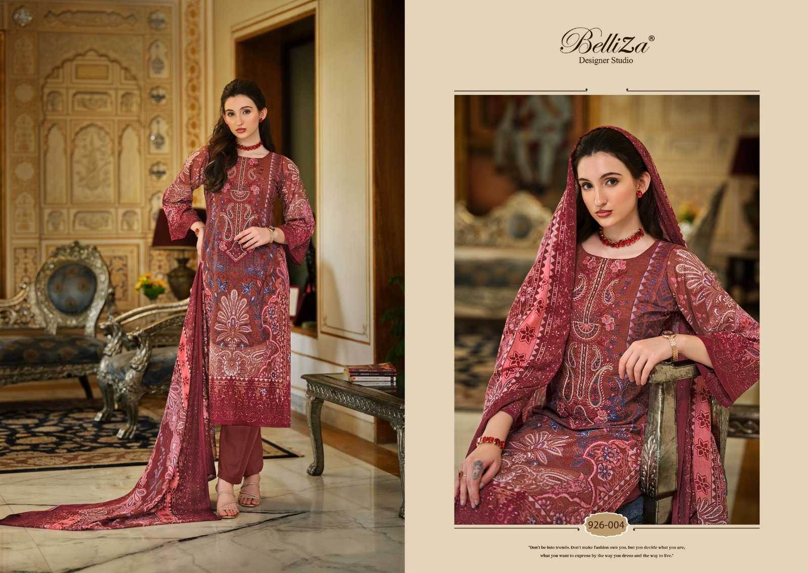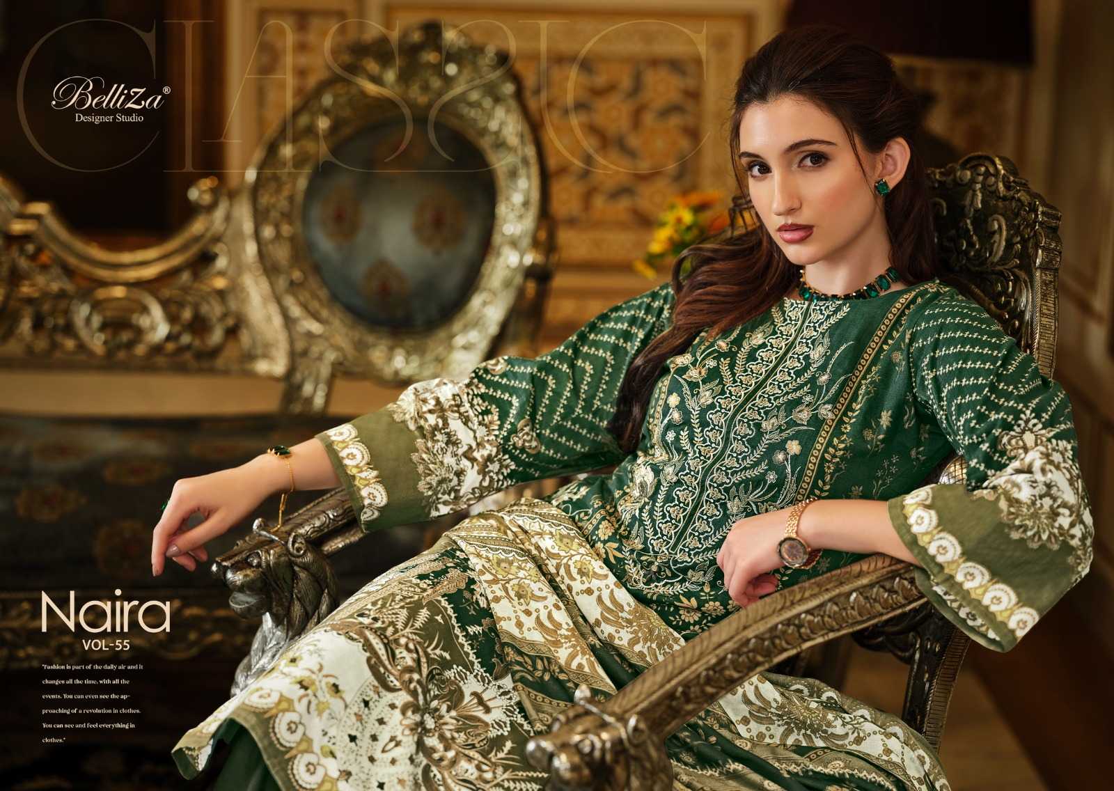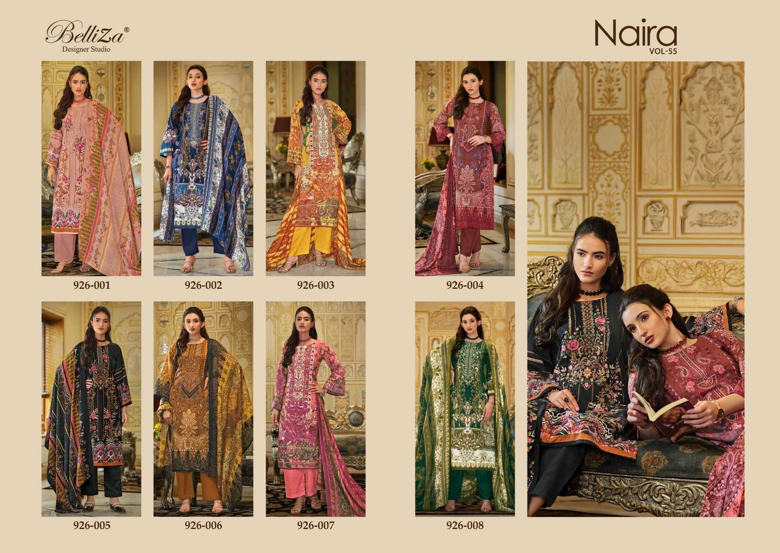 Looking for naira vol 55 by belliza designer modern pakistani cotton stylish look salwar suit material Full Catalouge at Best Price? Buy Now naira vol 55 by belliza designer modern pakistani cotton stylish look salwar suit material at Wholesale Rate of Rs 4600 with Total 8 Pcs from authroized dealer and supplier of Belliza Designer Studio Brand. Cost of Each piece is just only Rs 575 which is very low and affordable price to resale the product in your retail store. rrgandhi is Surat based Wholesale Supplier & Dealer of Belliza Designer Studio Brand. Click on Brand name to Know more about Brand's products.