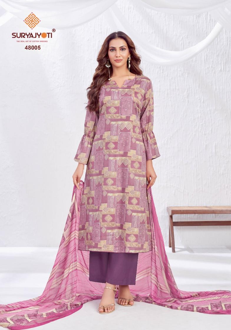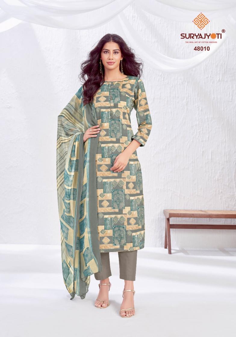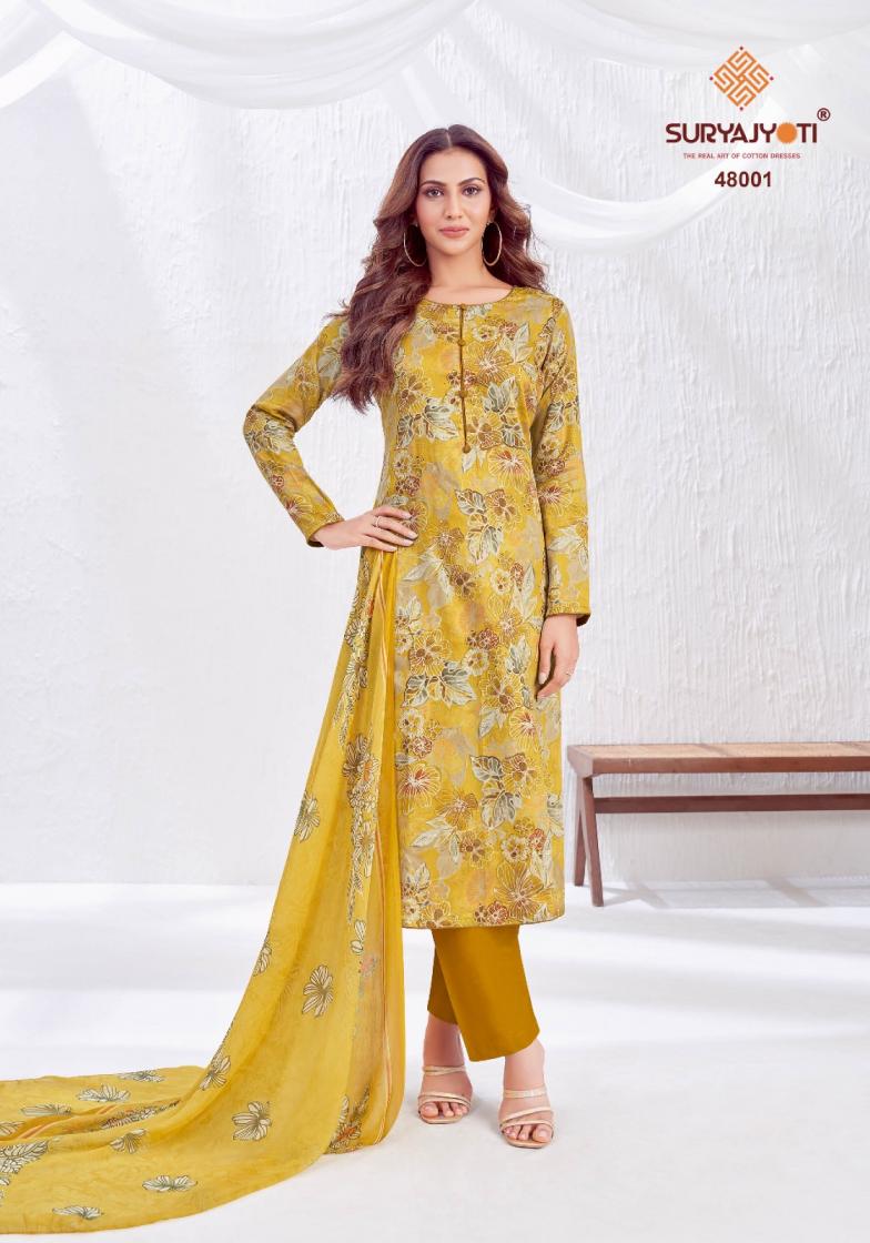 Looking for NAISHAA VOL 48 BY SURYAJYOTI JAM SATIN UNSTITCH SALWAR KAMEEZ Full Catalouge at Best Price? Buy Now NAISHAA VOL 48 BY SURYAJYOTI JAM SATIN UNSTITCH SALWAR KAMEEZ at Wholesale Rate of Rs 5650 with Total 10 Pcs from authroized dealer and supplier of Suryajyoti Cotton Brand. Cost of Each piece is just only Rs 565 which is very low and affordable price to resale the product in your retail store. rrgandhi is Surat based Wholesale Supplier & Dealer of Suryajyoti Cotton Brand. Click on Brand name to Know more about Brand's products.
