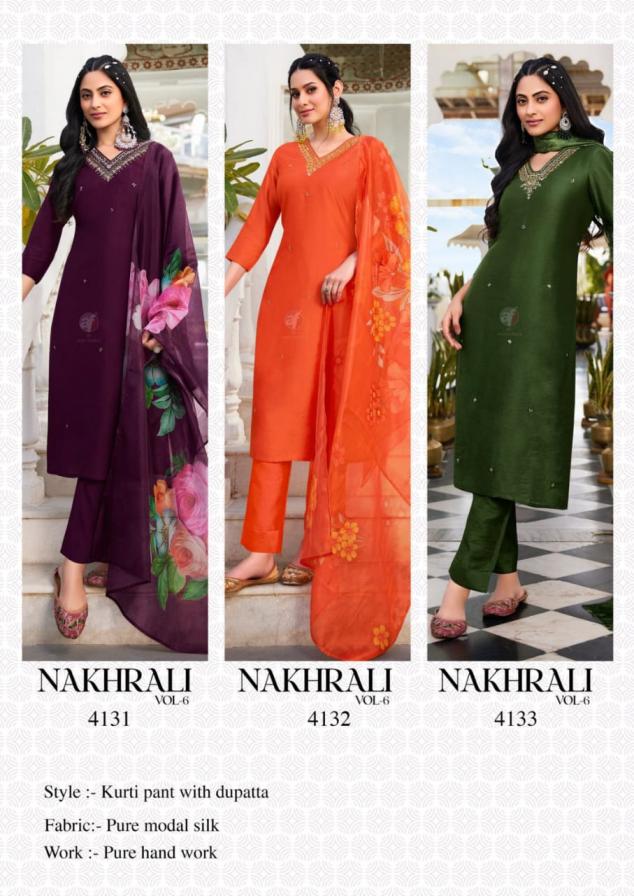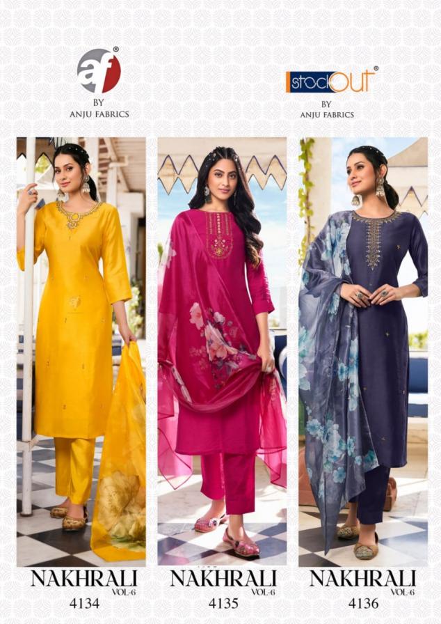 Looking for NAKHRALI VOL 6 BY ANJU FAB MODAL SILK FULL STITCH PARTY WEAR PLUS SIZE SUITS Full Catalouge at Best Price? Buy Now NAKHRALI VOL 6 BY ANJU FAB MODAL SILK FULL STITCH PARTY WEAR PLUS SIZE SUITS at Wholesale Rate of Rs 7170 with Total 6 Pcs from authroized dealer and supplier of A F Kurti Brand. Cost of Each piece is just only Rs 1195 which is very low and affordable price to resale the product in your retail store. rrgandhi is Surat based Wholesale Supplier & Dealer of A F Kurti Brand. Click on Brand name to Know more about Brand's products.