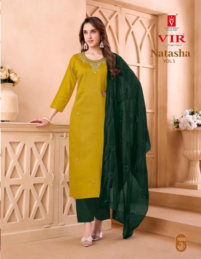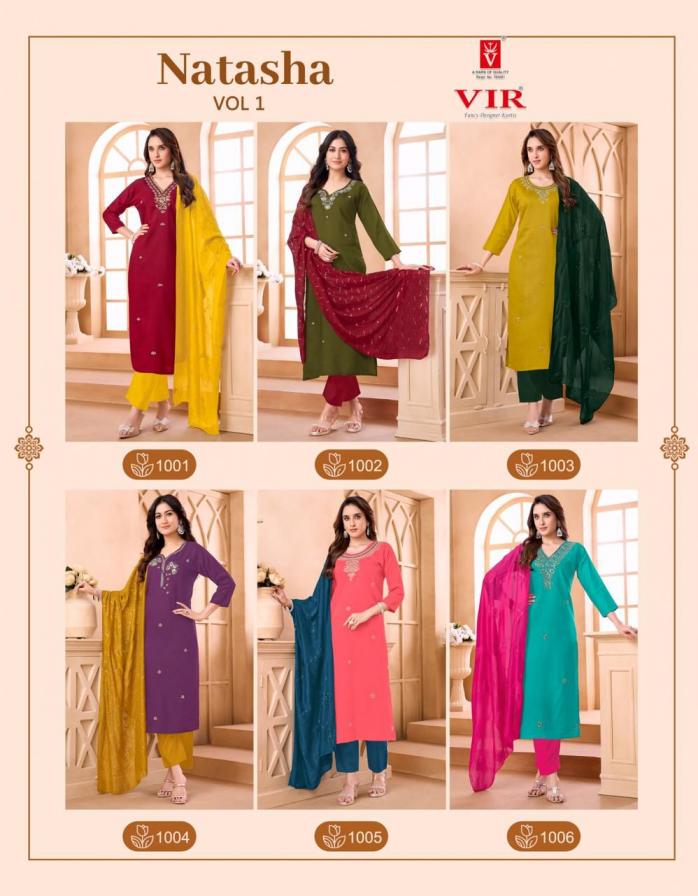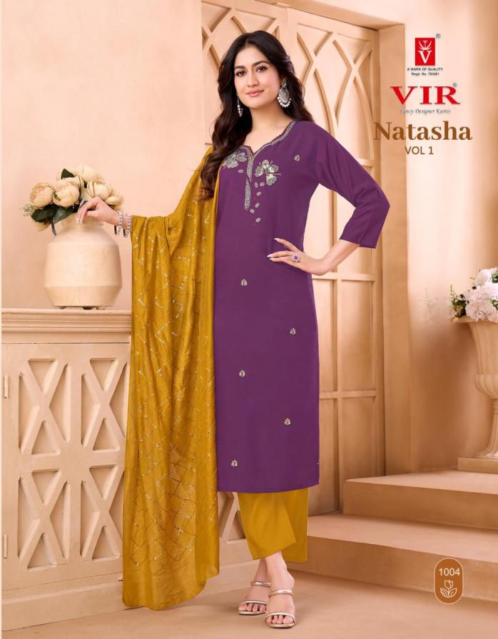Looking for NATASHA VOL 1 BY VIR BEAUTIFUL PRINT FULLY STITCH SALWAR KAMEEZ Full Catalouge at Best Price? Buy Now NATASHA VOL 1 BY VIR BEAUTIFUL PRINT FULLY STITCH SALWAR KAMEEZ at Wholesale Rate of Rs 3960 with Total 6 Pcs from authroized dealer and supplier of VIR Brand. Cost of Each piece is just only Rs 660 which is very low and affordable price to resale the product in your retail store. rrgandhi is Surat based Wholesale Supplier & Dealer of VIR Brand. Click on Brand name to Know more about Brand's products.
