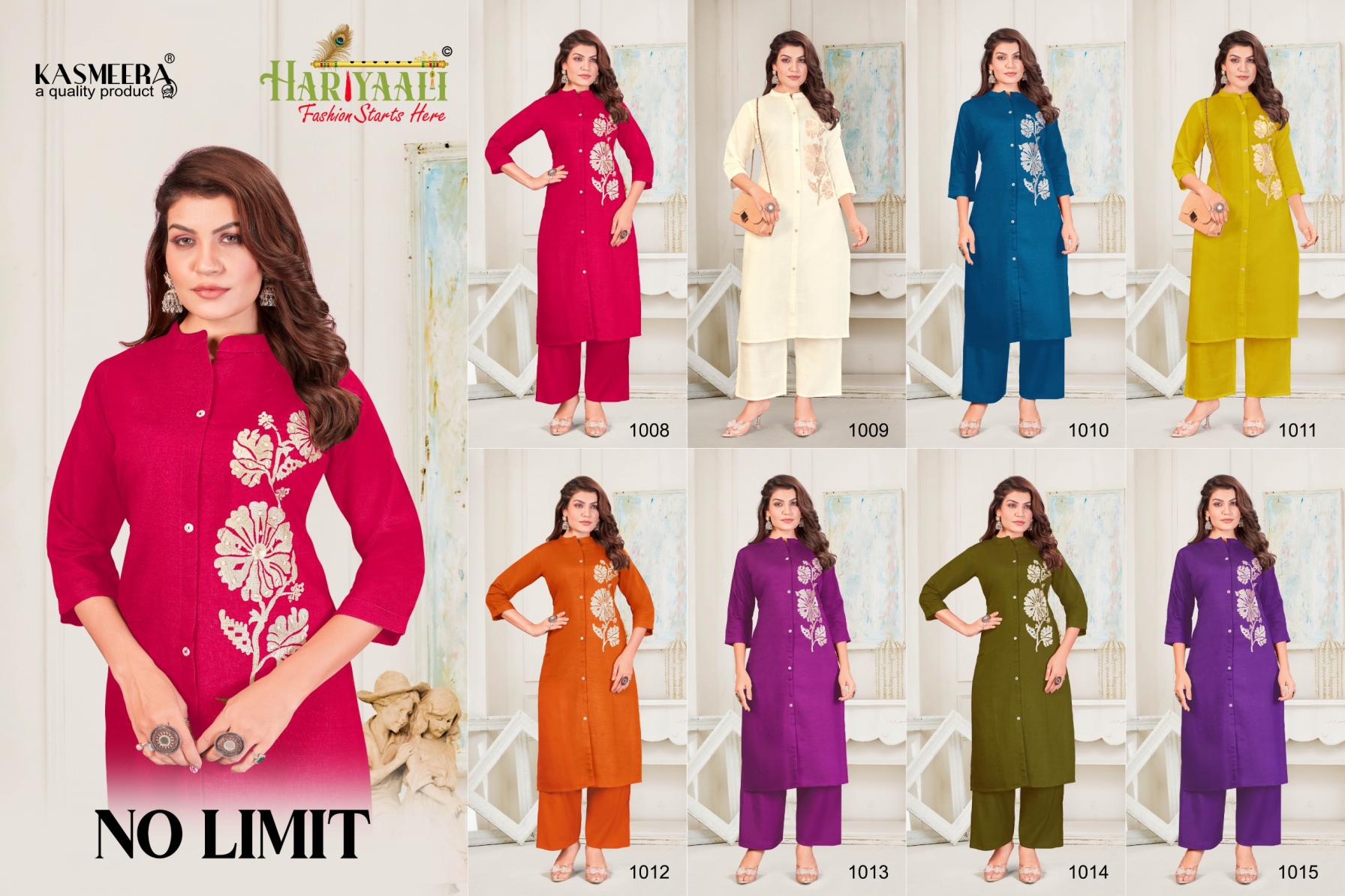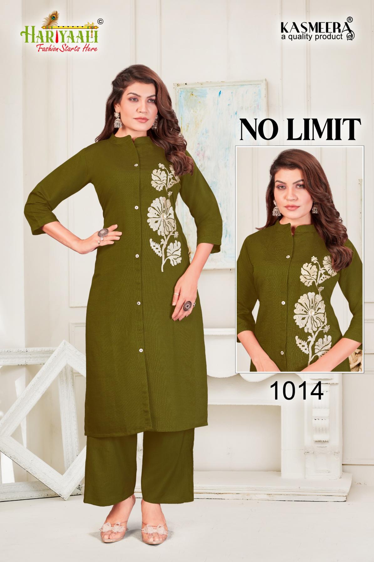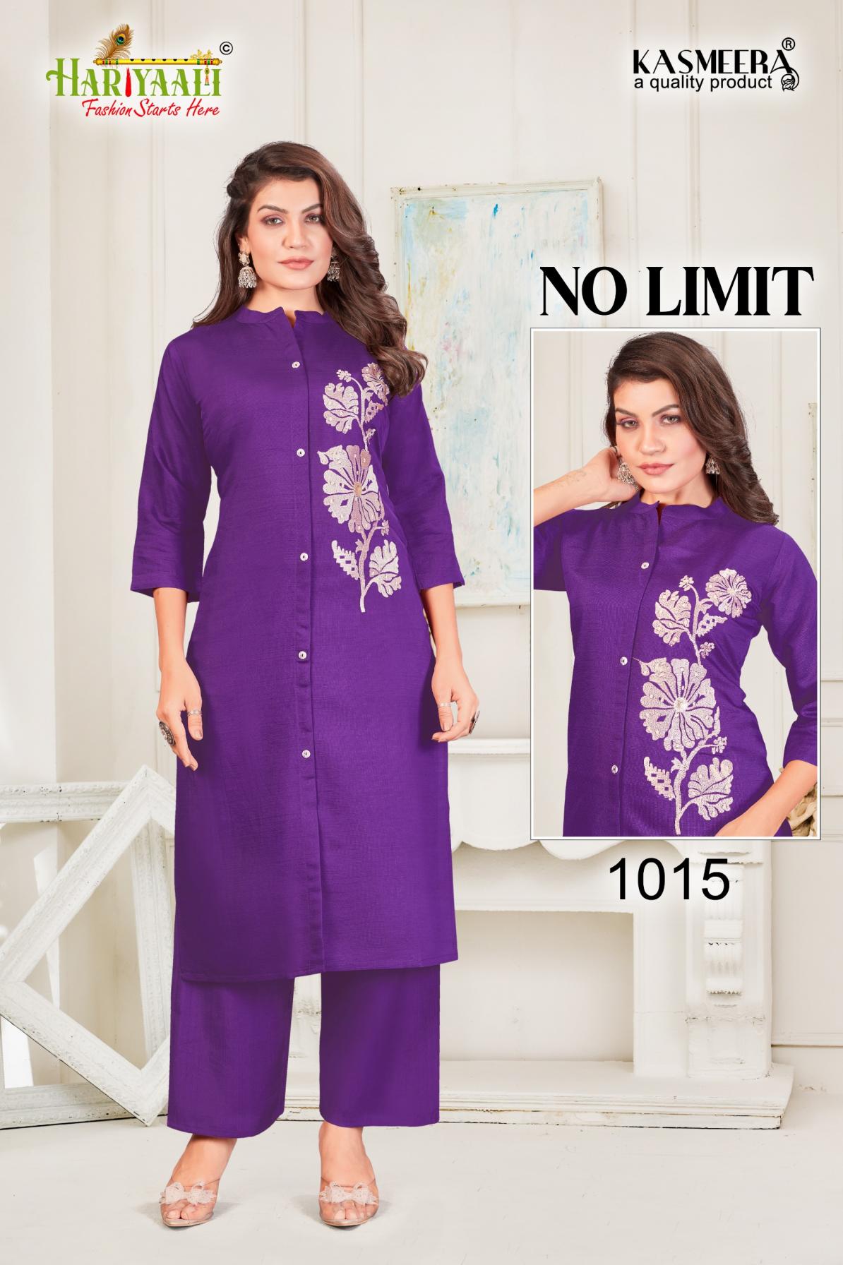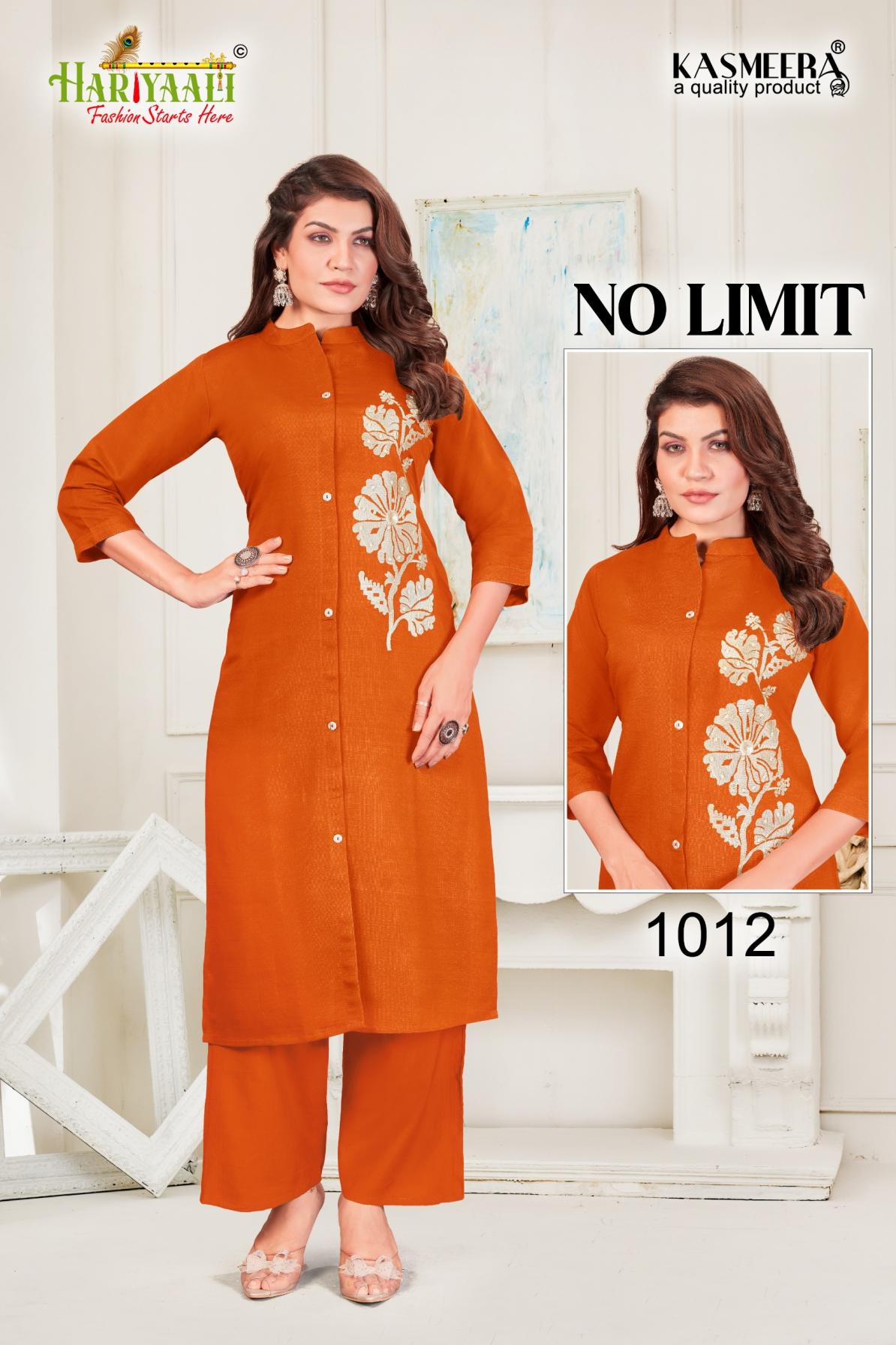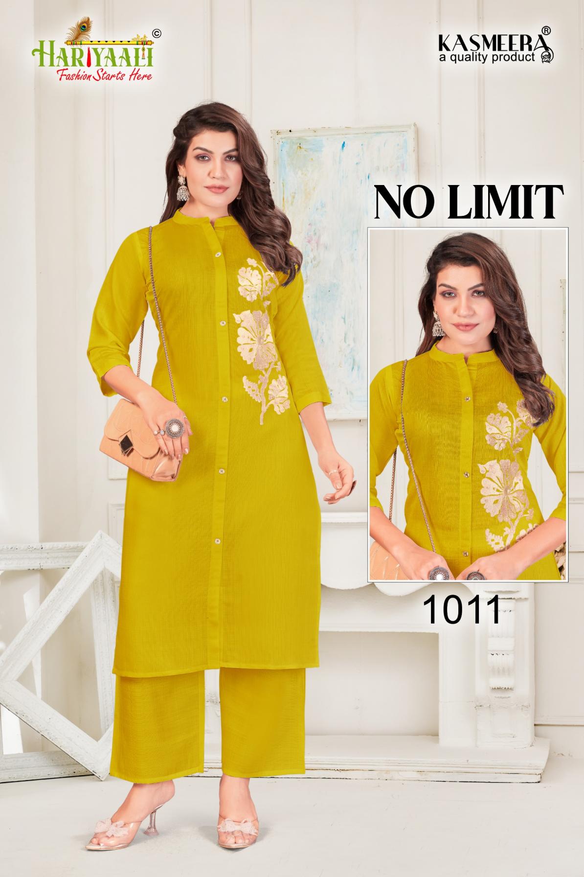 Looking for NO LIMIT 1008-1015 BY HARIYAALI READYMADE VERTICAN SILK COMBO CO-ORD FOR GIRLS Full Catalouge at Best Price? Buy Now NO LIMIT 1008-1015 BY HARIYAALI READYMADE VERTICAN SILK COMBO CO-ORD FOR GIRLS at Wholesale Rate of Rs 24400 with Total 40 Pcs from authroized dealer and supplier of Hariyaali Brand. Cost of Each piece is just only Rs 610 which is very low and affordable price to resale the product in your retail store. rrgandhi is Surat based Wholesale Supplier & Dealer of Hariyaali Brand. Click on Brand name to Know more about Brand's products.