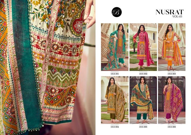 Looking for nusrat vol 3 by belliza designer hit design modal viscose muslin pakistani suits Full Catalouge at Best Price? Buy Now nusrat vol 3 by belliza designer hit design modal viscose muslin pakistani suits at Wholesale Rate of Rs 4170 with Total 6 Pcs from authroized dealer and supplier of Belliza Designer Studio Brand. Cost of Each piece is just only Rs 695 which is very low and affordable price to resale the product in your retail store. rrgandhi is Surat based Wholesale Supplier & Dealer of Belliza Designer Studio Brand. Click on Brand name to Know more about Brand's products.