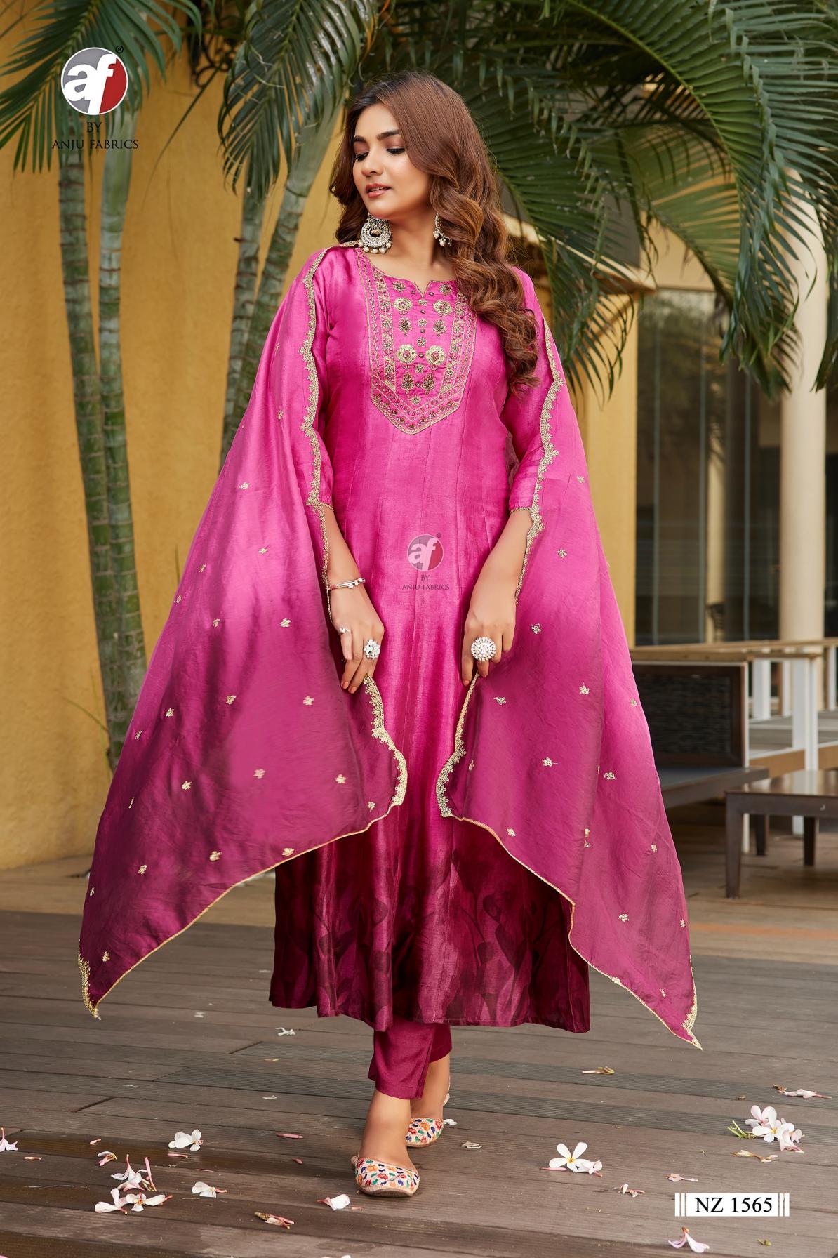 Looking for NZ 1565 BY ANJU FAB READYMADE DOLA SILK STYLISH COMBO SUIT FOR WOMENS Full Catalouge at Best Price? Buy Now NZ 1565 BY ANJU FAB READYMADE DOLA SILK STYLISH COMBO SUIT FOR WOMENS at Wholesale Rate of Rs 8780 with Total 4 Pcs from authroized dealer and supplier of A F Kurti Brand. Cost of Each piece is just only Rs 2195 which is very low and affordable price to resale the product in your retail store. rrgandhi is Surat based Wholesale Supplier & Dealer of A F Kurti Brand. Click on Brand name to Know more about Brand's products.