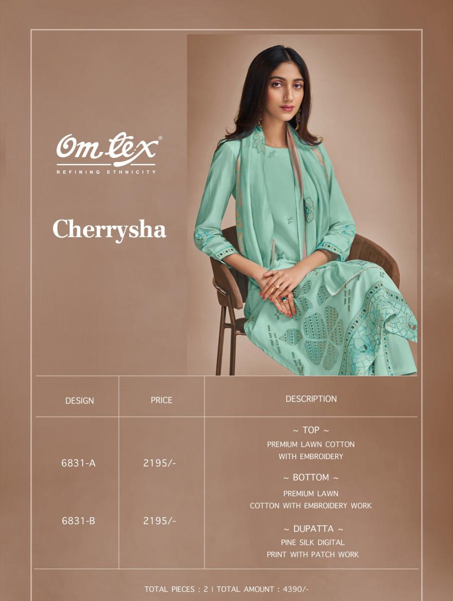 Looking for omtex cherrysha popular design lawn cotton unstitch 3pcs dress Full Catalouge at Best Price? Buy Now omtex cherrysha popular design lawn cotton unstitch 3pcs dress at Wholesale Rate of Rs 4390 with Total 2 Pcs from authroized dealer and supplier of Om Tex Brand. Cost of Each piece is just only Rs 2195 which is very low and affordable price to resale the product in your retail store. rrgandhi is Surat based Wholesale Supplier & Dealer of Om Tex Brand. Click on Brand name to Know more about Brand's products.