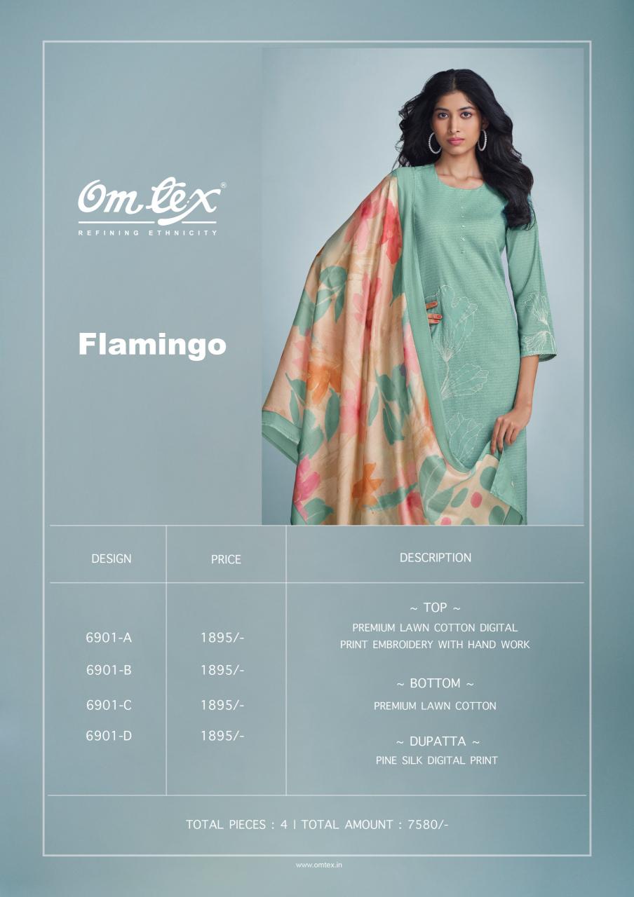 Looking for omtex flamingo lawn cotton unstitched dress material online Full Catalouge at Best Price? Buy Now omtex flamingo lawn cotton unstitched dress material online at Wholesale Rate of Rs 7580 with Total 4 Pcs from authroized dealer and supplier of Om Tex Brand. Cost of Each piece is just only Rs 1895 which is very low and affordable price to resale the product in your retail store. rrgandhi is Surat based Wholesale Supplier & Dealer of Om Tex Brand. Click on Brand name to Know more about Brand's products.