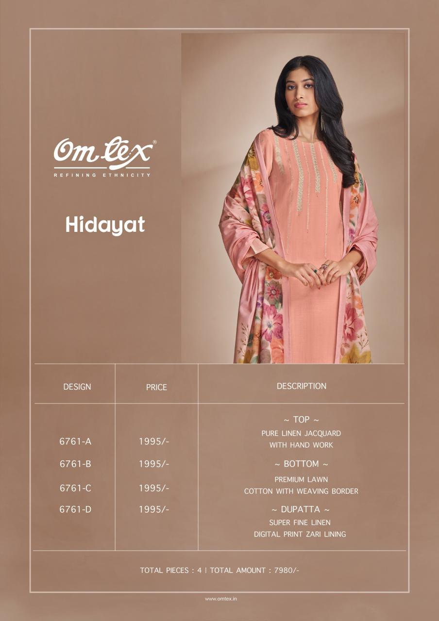 Looking for omtex hidayat linen jacquard hit design unstitch 3pcs dress Full Catalouge at Best Price? Buy Now omtex hidayat linen jacquard hit design unstitch 3pcs dress at Wholesale Rate of Rs 7980 with Total 4 Pcs from authroized dealer and supplier of Om Tex Brand. Cost of Each piece is just only Rs 1995 which is very low and affordable price to resale the product in your retail store. rrgandhi is Surat based Wholesale Supplier & Dealer of Om Tex Brand. Click on Brand name to Know more about Brand's products.