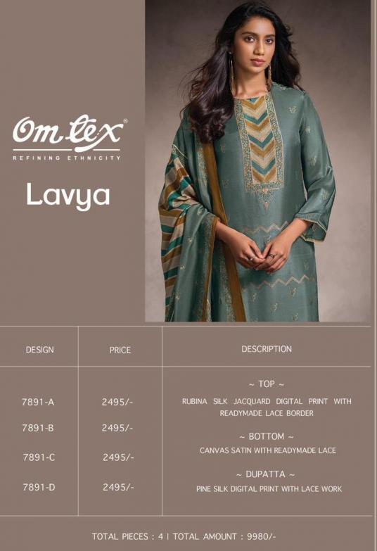 Looking for OMTEX LAVYA PRETTY RUBINA SILK JACQUARD SALWAR KAMEEZ Full Catalouge at Best Price? Buy Now OMTEX LAVYA PRETTY RUBINA SILK JACQUARD SALWAR KAMEEZ at Wholesale Rate of Rs 9980 with Total 4 Pcs from authroized dealer and supplier of Om Tex Brand. Cost of Each piece is just only Rs 2495 which is very low and affordable price to resale the product in your retail store. rrgandhi is Surat based Wholesale Supplier & Dealer of Om Tex Brand. Click on Brand name to Know more about Brand's products.