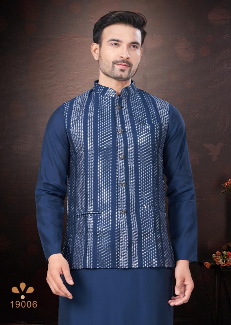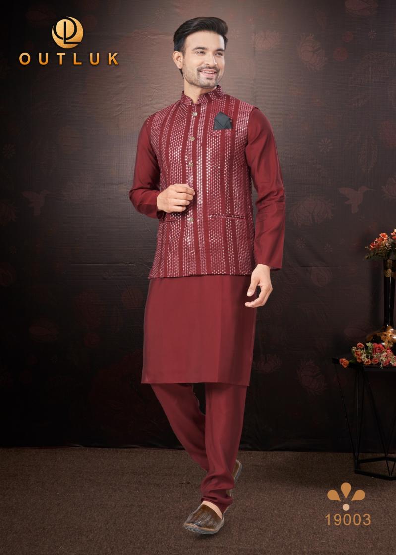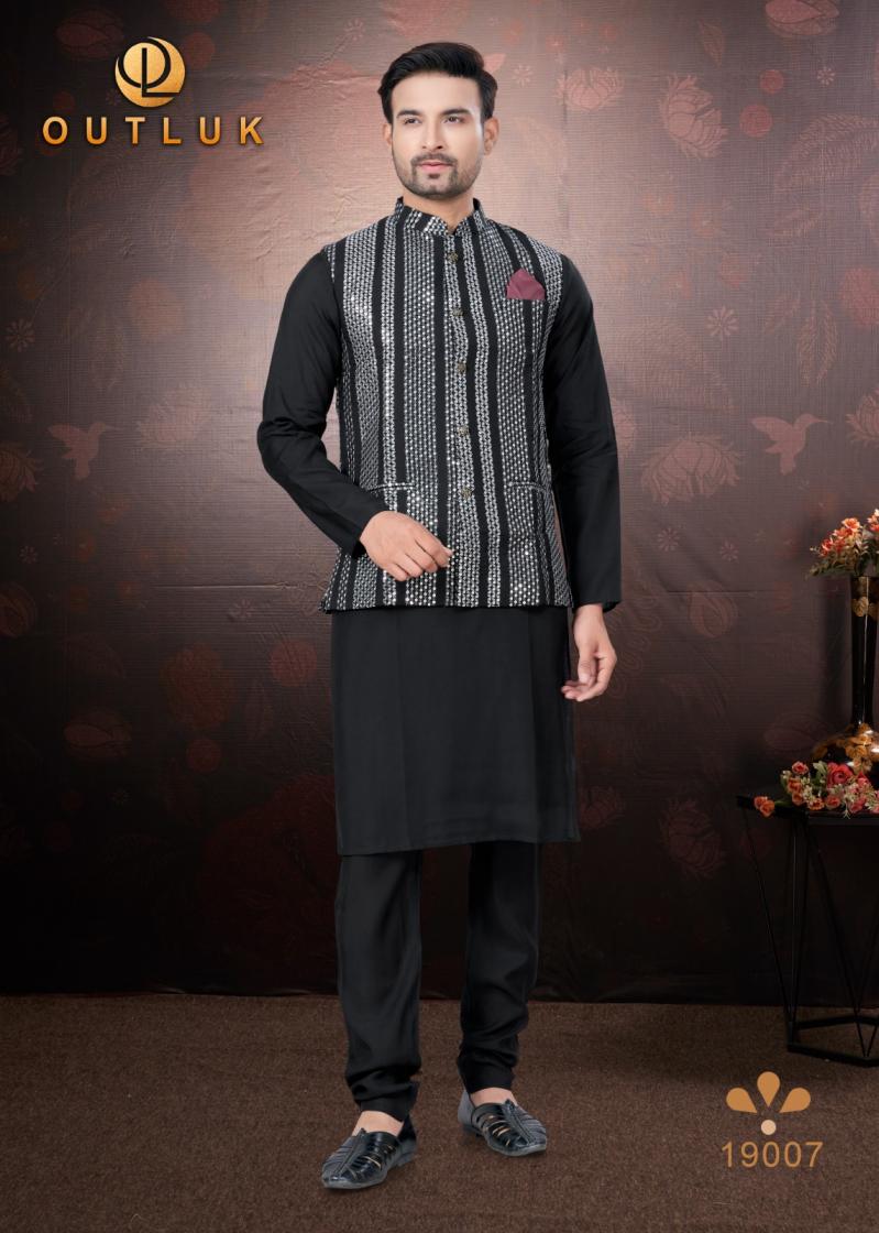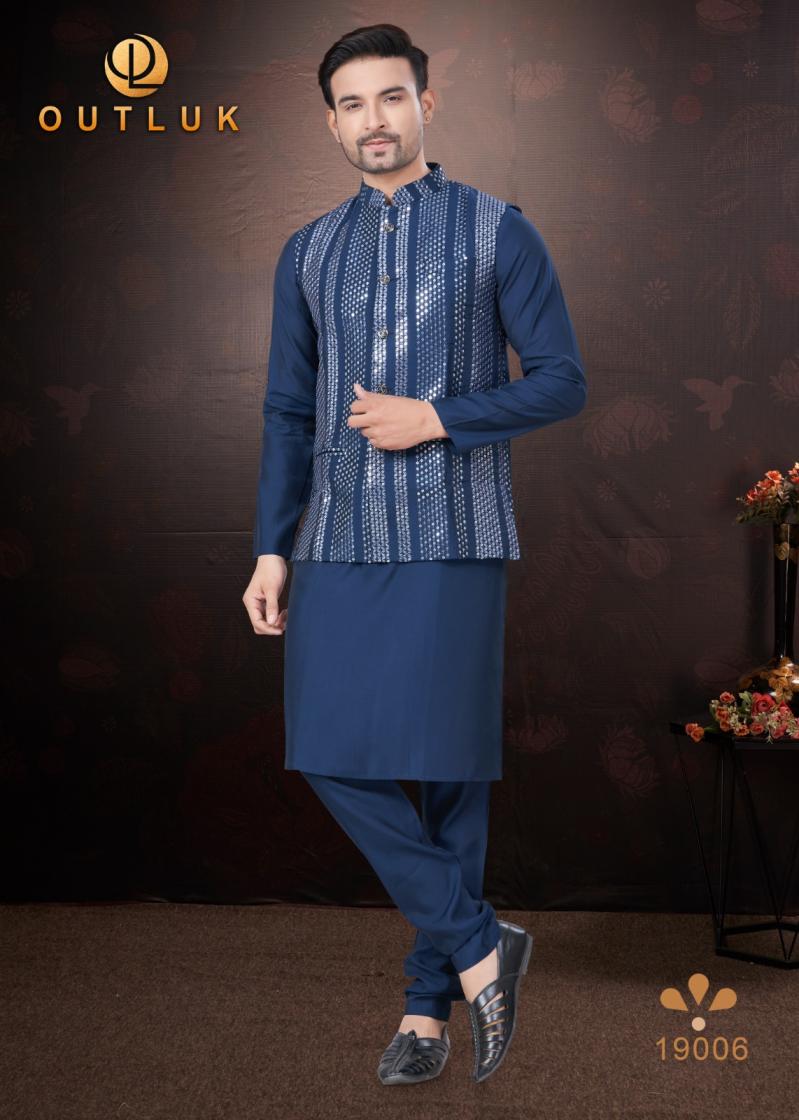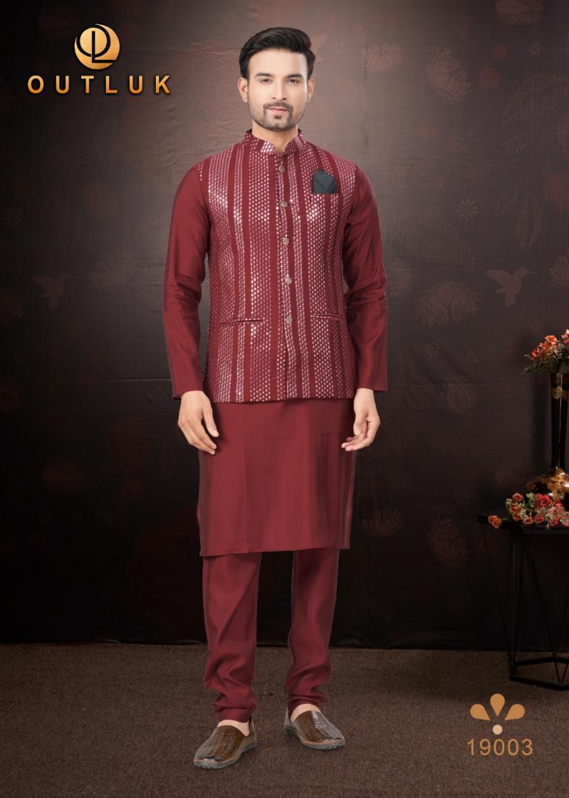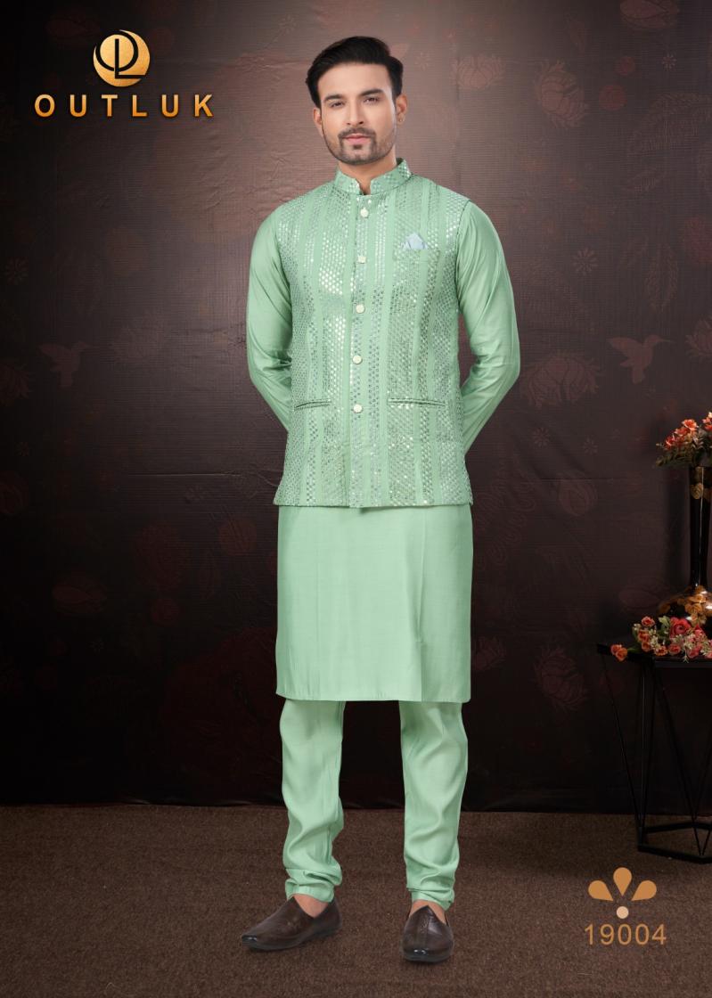 Looking for OUTLUK SILK WEDDING COLLECTION VOL 19 TRENDY FULL STITCH MENS KOTI KURTA WITH PAJAMA Full Catalouge at Best Price? Buy Now OUTLUK SILK WEDDING COLLECTION VOL 19 TRENDY FULL STITCH MENS KOTI KURTA WITH PAJAMA at Wholesale Rate of Rs 16155 with Total 9 Pcs from authroized dealer and supplier of Outluk Brand. Cost of Each piece is just only Rs 1795 which is very low and affordable price to resale the product in your retail store. rrgandhi is Surat based Wholesale Supplier & Dealer of Outluk Brand. Click on Brand name to Know more about Brand's products.