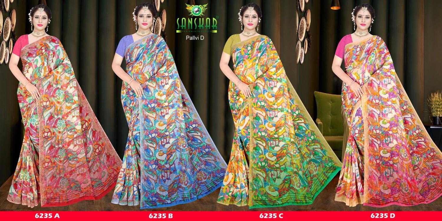 Looking for pallavi cdv by sanskar tex prints casual wear georgette saree with fancy blouse Full Catalouge at Best Price? Buy Now pallavi cdv by sanskar tex prints casual wear georgette saree with fancy blouse at Wholesale Rate of Rs 5280 with Total 12 Pcs from authroized dealer and supplier of Brand. Cost of Each piece is just only Rs 440 which is very low and affordable price to resale the product in your retail store. rrgandhi is Surat based Wholesale Supplier & Dealer of Brand. Click on Brand name to Know more about Brand's products.