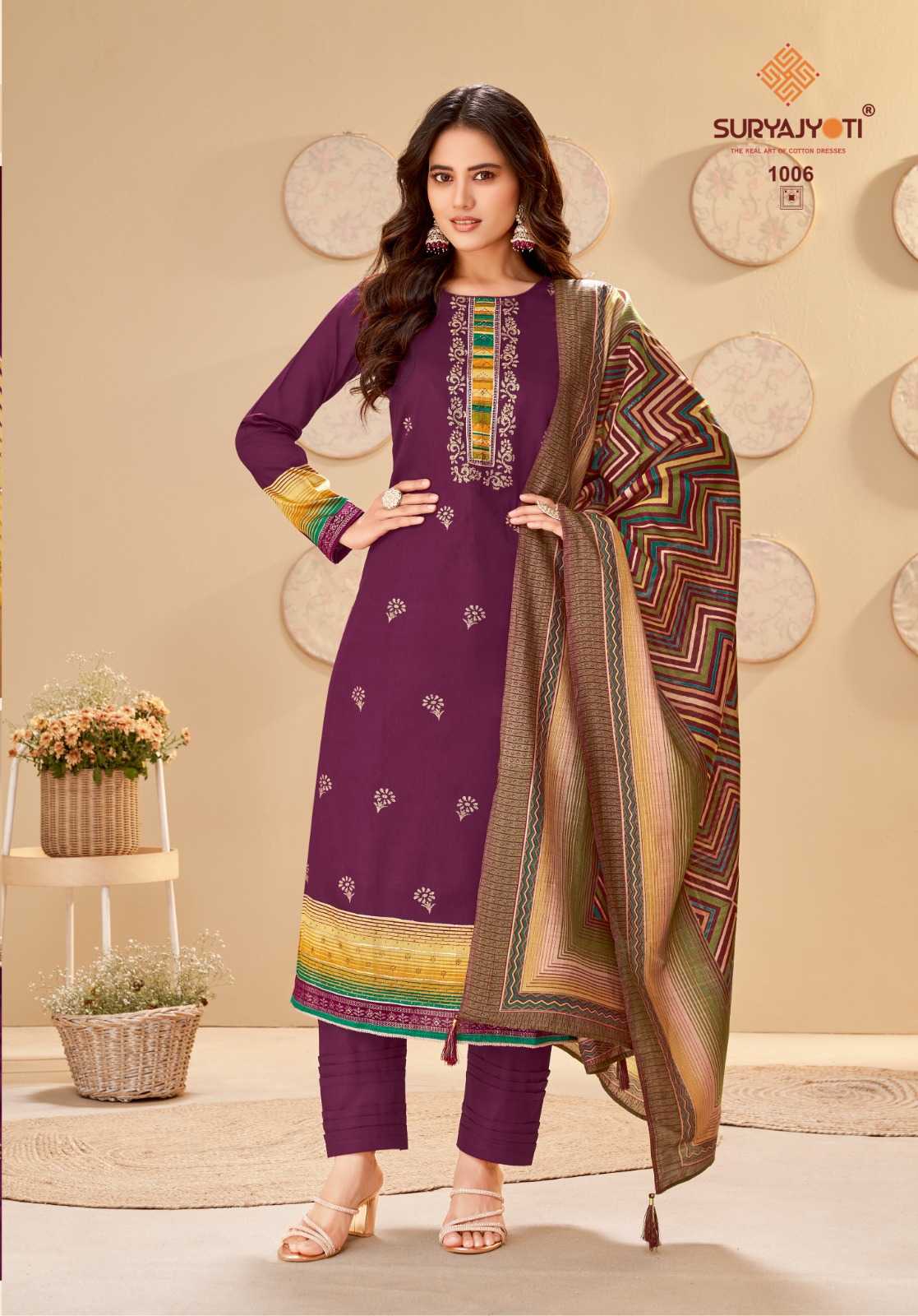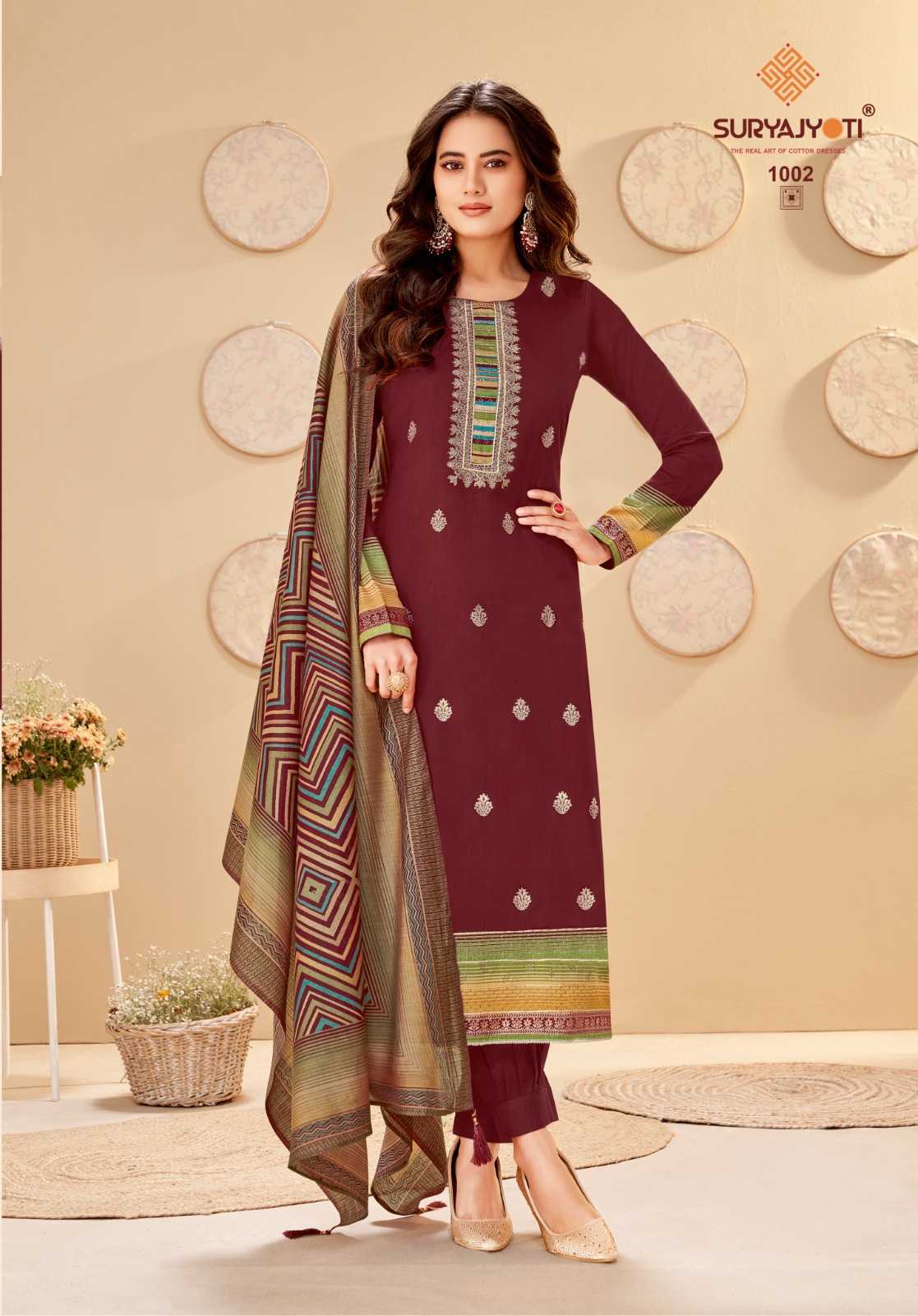 Looking for pallavi vol 1 by suryajyoti elegant style jaam satin salwar kameez material supplier Full Catalouge at Best Price? Buy Now pallavi vol 1 by suryajyoti elegant style jaam satin salwar kameez material supplier at Wholesale Rate of Rs 4680 with Total 6 Pcs from authroized dealer and supplier of Suryajyoti Cotton Brand. Cost of Each piece is just only Rs 780 which is very low and affordable price to resale the product in your retail store. rrgandhi is Surat based Wholesale Supplier & Dealer of Suryajyoti Cotton Brand. Click on Brand name to Know more about Brand's products.