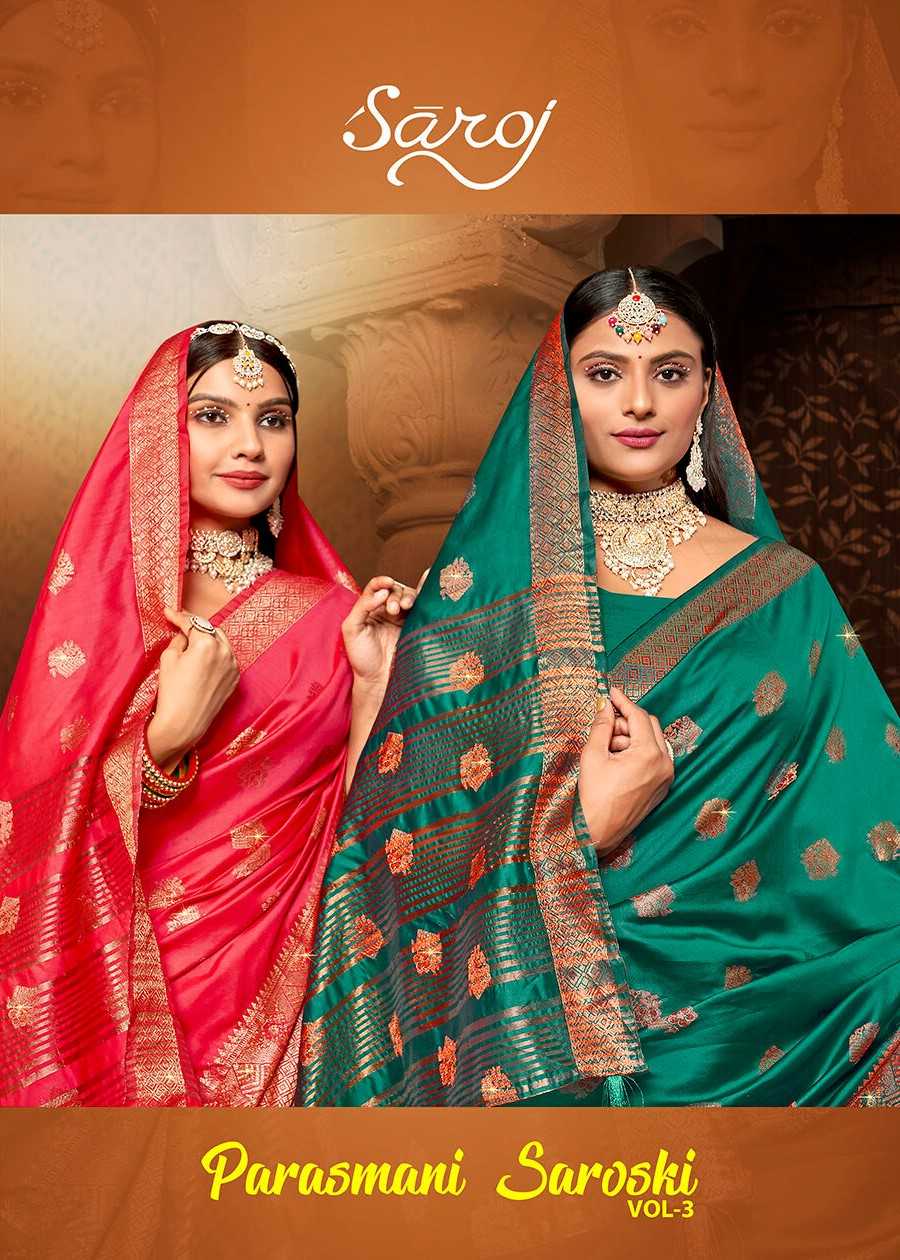 Looking for Parasmani Swarovski Saroj vol.3 Soft Silk with heavy swarovski Full Catalouge at Best Price? Buy Now Parasmani Swarovski Saroj vol.3 Soft Silk with heavy swarovski at Wholesale Rate of Rs 2760 with Total 6 Pcs from authroized dealer and supplier of Saroj Textiles Brand. Cost of Each piece is just only Rs 460 which is very low and affordable price to resale the product in your retail store. rrgandhi is Surat based Wholesale Supplier & Dealer of Saroj Textiles Brand. Click on Brand name to Know more about Brand's products.