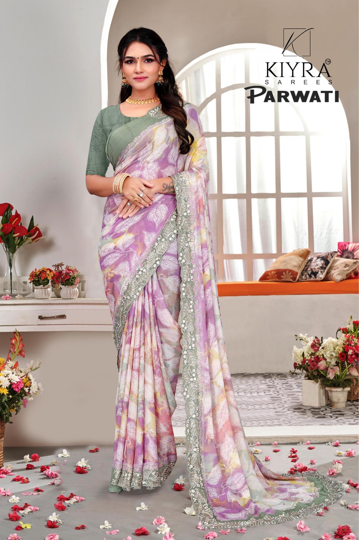 Looking for PARWATI BY KIYRA DULL MOSS UNIQUE SAREES ONLINE Full Catalouge at Best Price? Buy Now PARWATI BY KIYRA DULL MOSS UNIQUE SAREES ONLINE at Wholesale Rate of Rs 5310 with Total 6 Pcs from authroized dealer and supplier of Kiyra Sarees Brand. Cost of Each piece is just only Rs 885 which is very low and affordable price to resale the product in your retail store. rrgandhi is Surat based Wholesale Supplier & Dealer of Kiyra Sarees Brand. Click on Brand name to Know more about Brand's products.