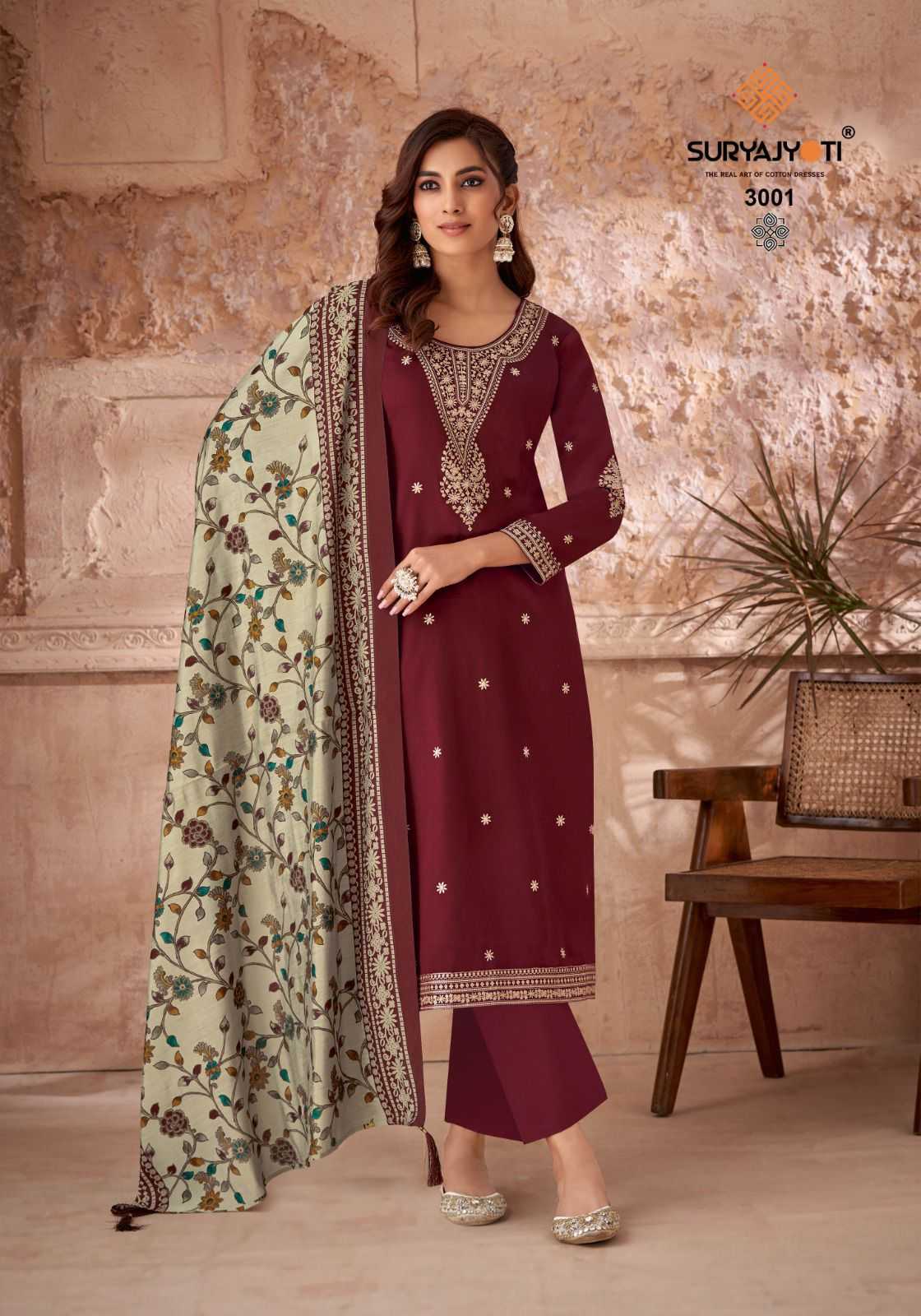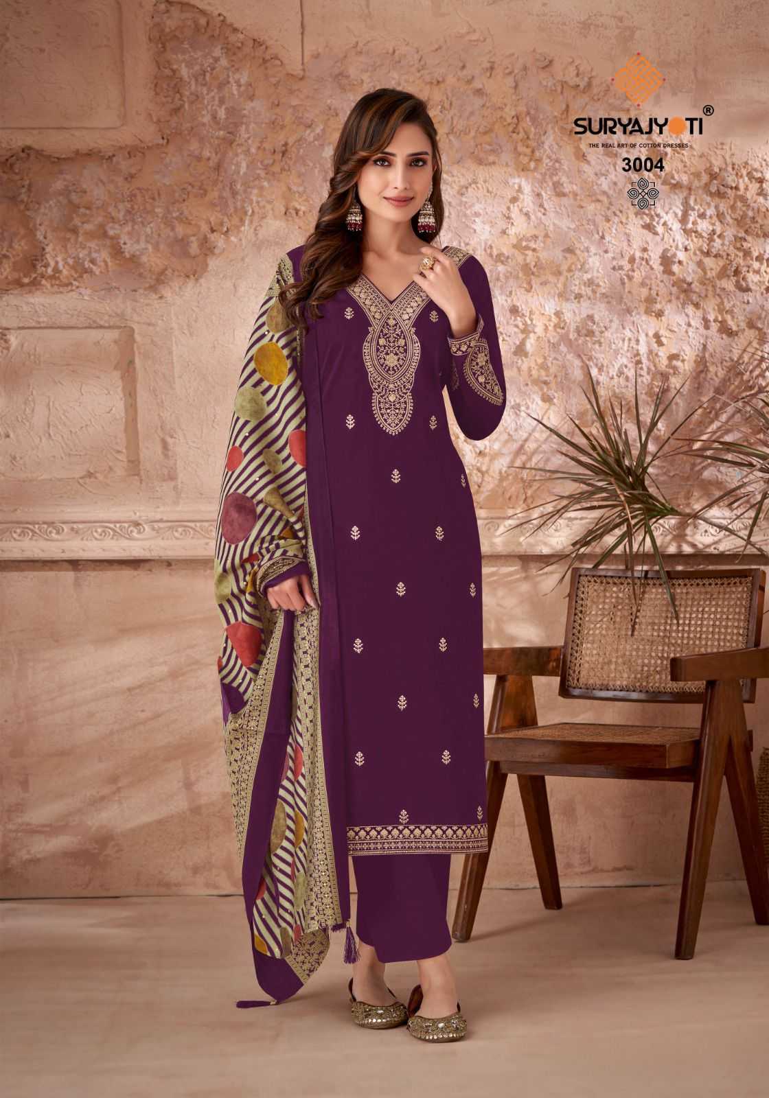 Looking for pashan vol 3 by suryajyoti fancy occastion wear jaam satin with embroidered unstitch salwar suit Full Catalouge at Best Price? Buy Now pashan vol 3 by suryajyoti fancy occastion wear jaam satin with embroidered unstitch salwar suit at Wholesale Rate of Rs 4920 with Total 6 Pcs from authroized dealer and supplier of Suryajyoti Cotton Brand. Cost of Each piece is just only Rs 820 which is very low and affordable price to resale the product in your retail store. rrgandhi is Surat based Wholesale Supplier & Dealer of Suryajyoti Cotton Brand. Click on Brand name to Know more about Brand's products.