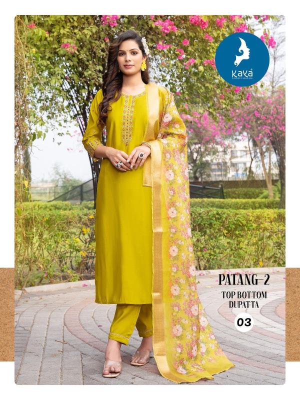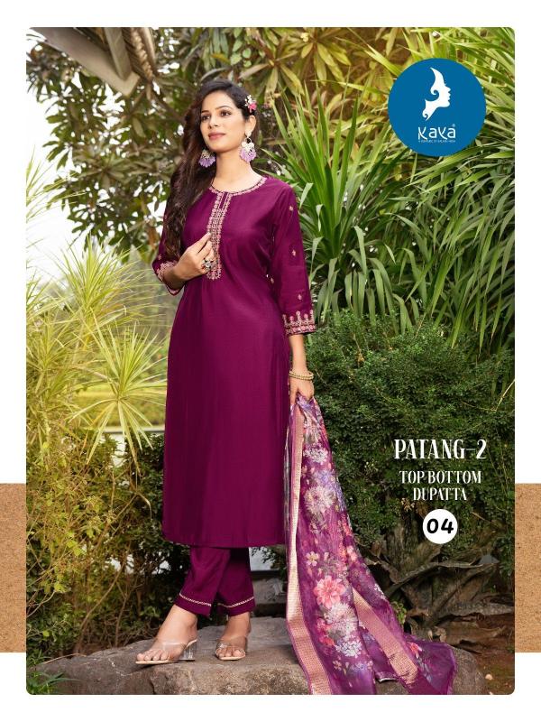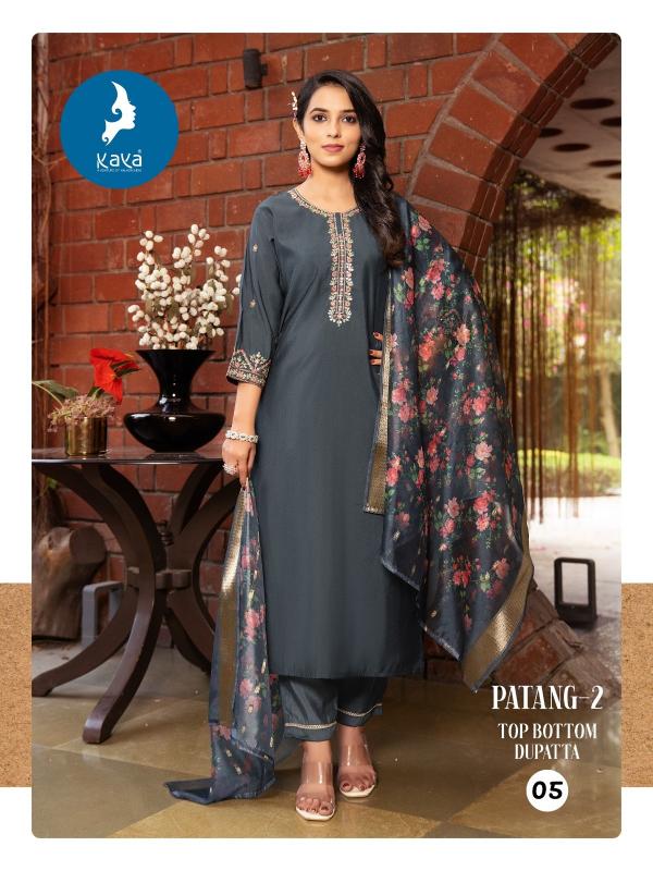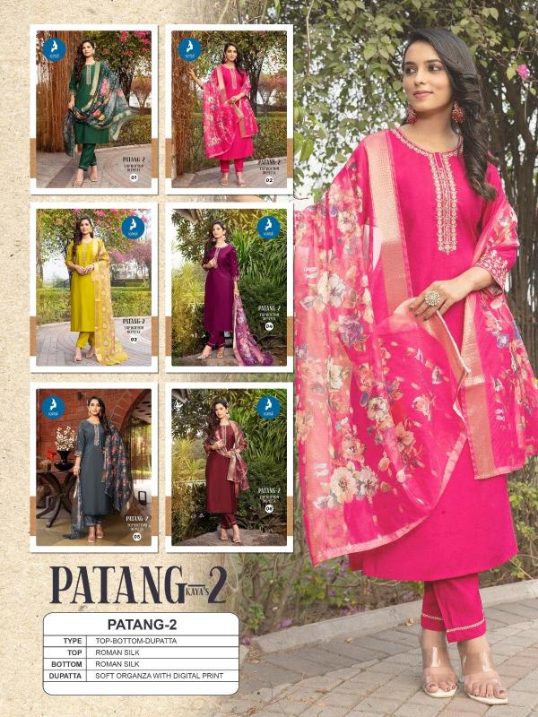 Looking for patang vol 2 by kaya readymade elegant style roman silk 3pcs dress Full Catalouge at Best Price? Buy Now patang vol 2 by kaya readymade elegant style roman silk 3pcs dress at Wholesale Rate of Rs 5370 with Total 6 Pcs from authroized dealer and supplier of Kaya Brand. Cost of Each piece is just only Rs 895 which is very low and affordable price to resale the product in your retail store. rrgandhi is Surat based Wholesale Supplier & Dealer of Kaya Brand. Click on Brand name to Know more about Brand's products.