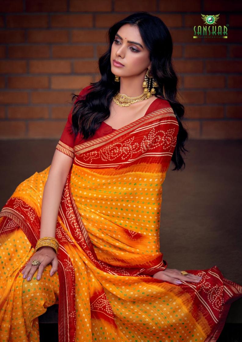 Looking for PHULWARI BY SANSKAR TEX PRINTS BANDHNI PRINT SAREE ONLINE Full Catalouge at Best Price? Buy Now PHULWARI BY SANSKAR TEX PRINTS BANDHNI PRINT SAREE ONLINE at Wholesale Rate of Rs 4120 with Total 8 Pcs from authroized dealer and supplier of Sanskar Tex Prints Brand. Cost of Each piece is just only Rs 515 which is very low and affordable price to resale the product in your retail store. rrgandhi is Surat based Wholesale Supplier & Dealer of Sanskar Tex Prints Brand. Click on Brand name to Know more about Brand's products.