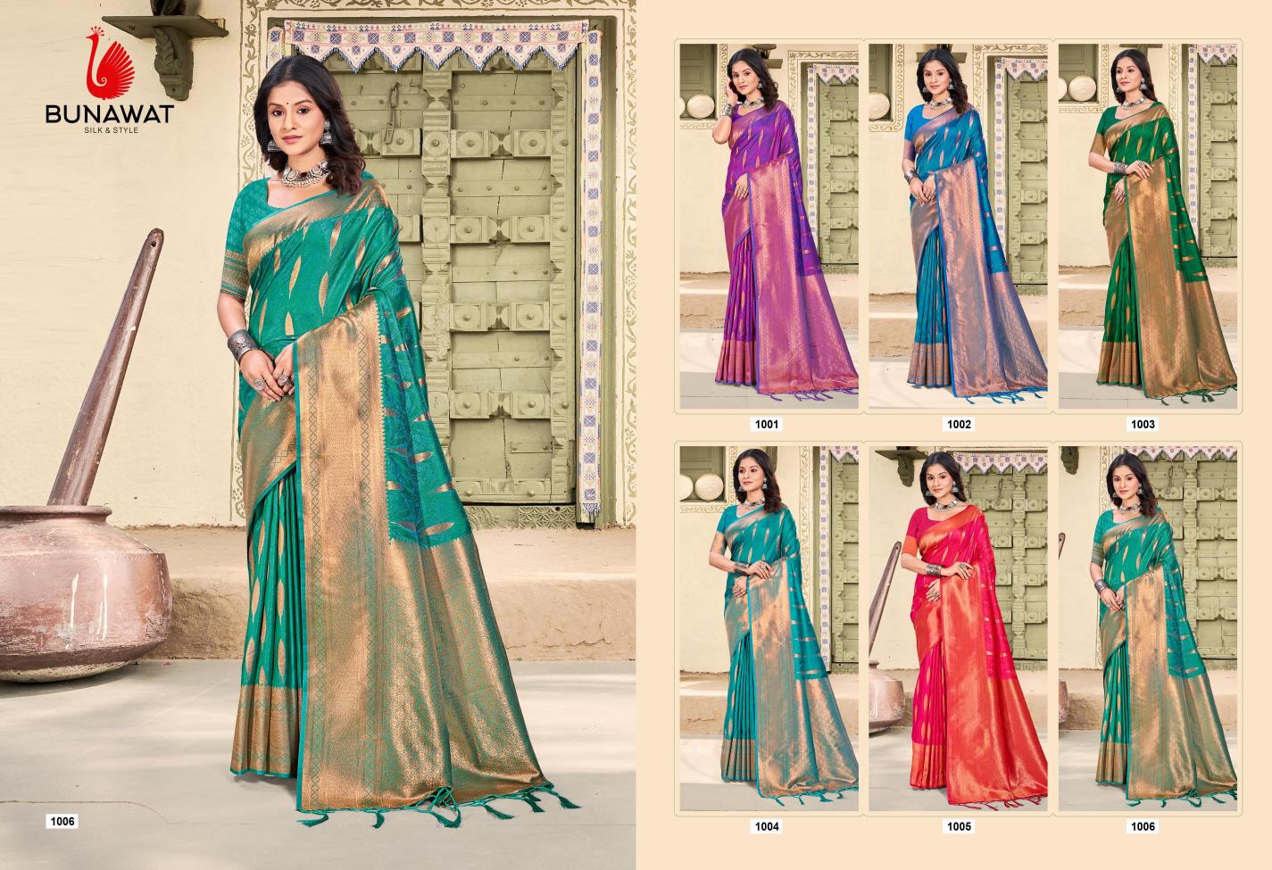 Looking for Pinkvilla By Bunawat Traditional Wear New Designer Silk Sarees Collection Full Catalouge at Best Price? Buy Now Pinkvilla By Bunawat Traditional Wear New Designer Silk Sarees Collection at Wholesale Rate of Rs 6090 with Total 6 Pcs from authroized dealer and supplier of Bunawat Brand. Cost of Each piece is just only Rs 1015 which is very low and affordable price to resale the product in your retail store. rrgandhi is Surat based Wholesale Supplier & Dealer of Bunawat Brand. Click on Brand name to Know more about Brand's products.