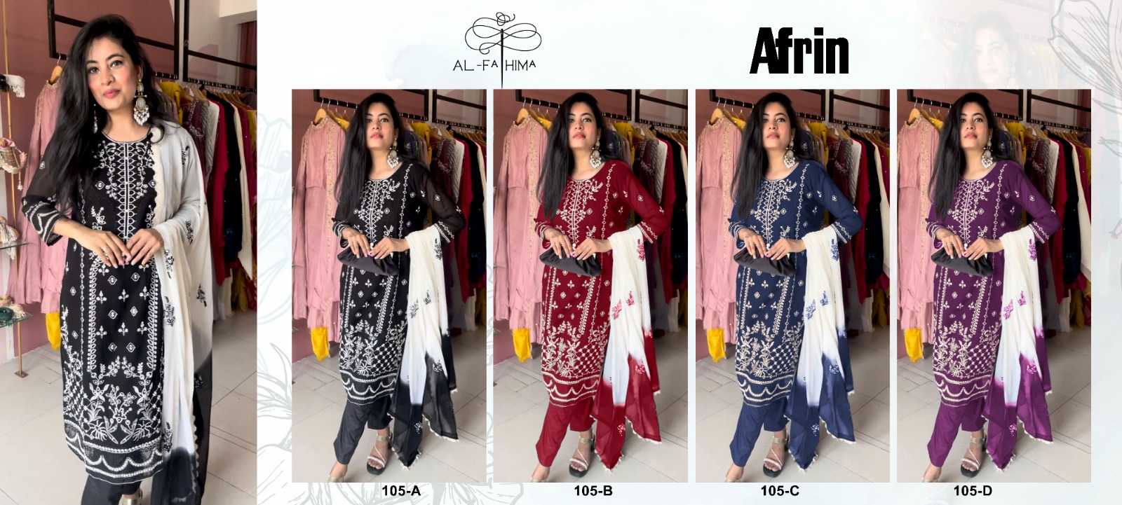 Looking for pr afrin 105 ethnic style georgette semi stitch pakistani salwar suit Full Catalouge at Best Price? Buy Now pr afrin 105 ethnic style georgette semi stitch pakistani salwar suit at Wholesale Rate of Rs 5036 with Total 4 Pcs from authroized dealer and supplier of P R Clothing Brand. Cost of Each piece is just only Rs 1259 which is very low and affordable price to resale the product in your retail store. rrgandhi is Surat based Wholesale Supplier & Dealer of P R Clothing Brand. Click on Brand name to Know more about Brand's products.