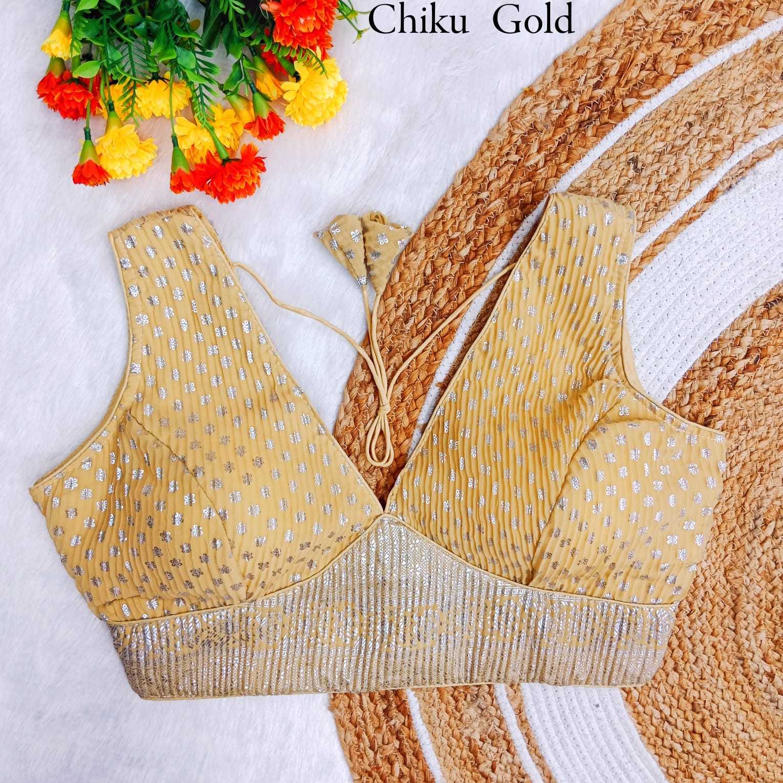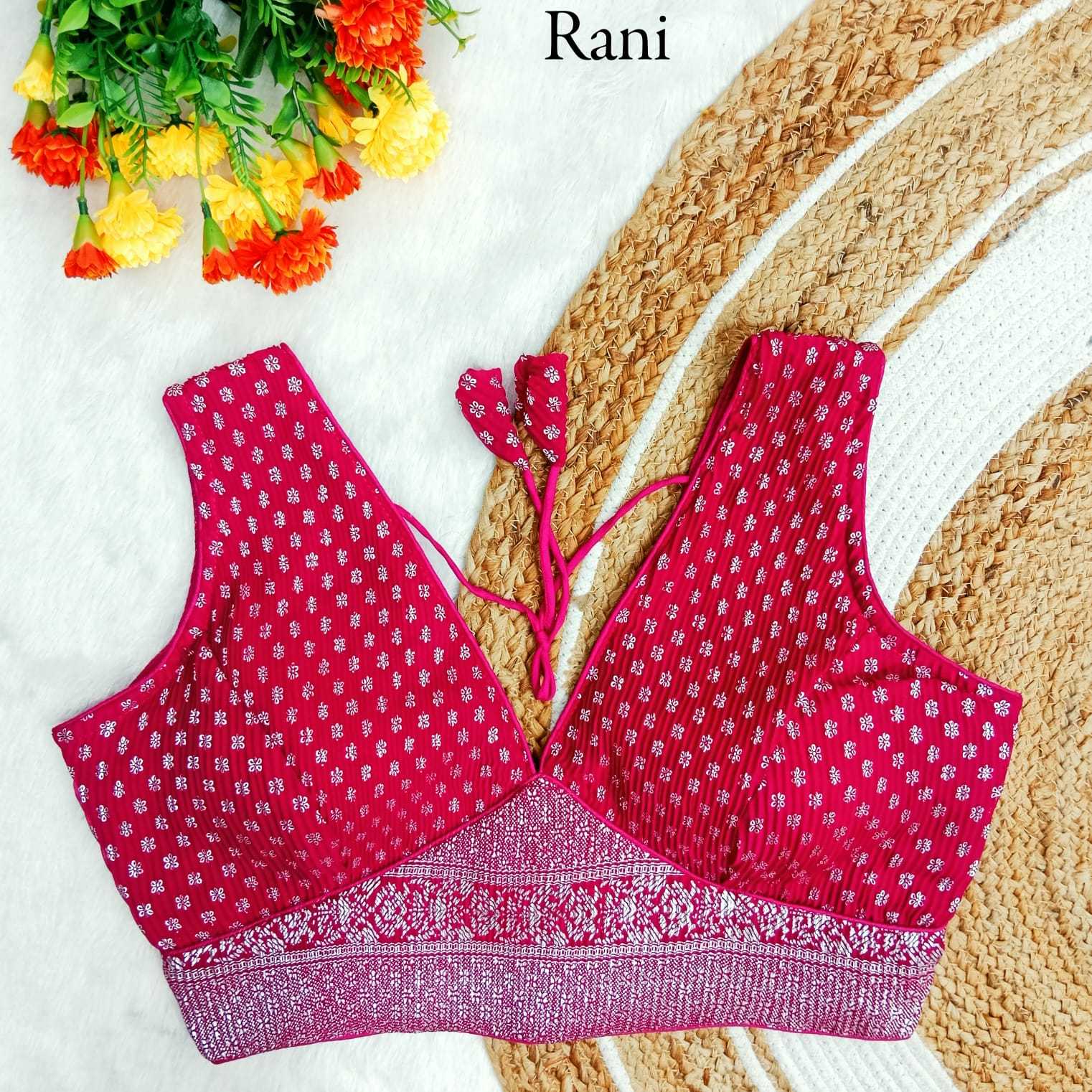 Looking for pr crush foil sabyasachi pattern fancy georgette crush silver foil work full stitch blouse Full Catalouge at Best Price? Buy Now pr crush foil sabyasachi pattern fancy georgette crush silver foil work full stitch blouse at Wholesale Rate of Rs 3000 with Total 10 Pcs from authroized dealer and supplier of P R Clothing Brand. Cost of Each piece is just only Rs 300 which is very low and affordable price to resale the product in your retail store. rrgandhi is Surat based Wholesale Supplier & Dealer of P R Clothing Brand. Click on Brand name to Know more about Brand's products.