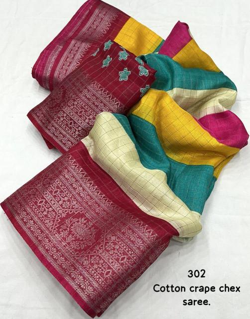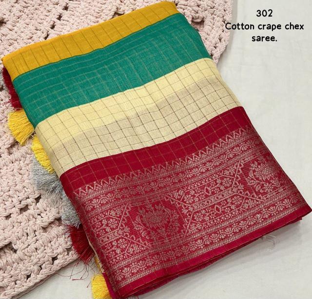Looking for pr kc 302 cotton crape chex amazing prints saree with blouse pcs online Full Catalouge at Best Price? Buy Now pr kc 302 cotton crape chex amazing prints saree with blouse pcs online at Wholesale Rate of Rs 2100 with Total 3 Pcs from authroized dealer and supplier of P R Clothing Brand. Cost of Each piece is just only Rs 700 which is very low and affordable price to resale the product in your retail store. rrgandhi is Surat based Wholesale Supplier & Dealer of P R Clothing Brand. Click on Brand name to Know more about Brand's products.