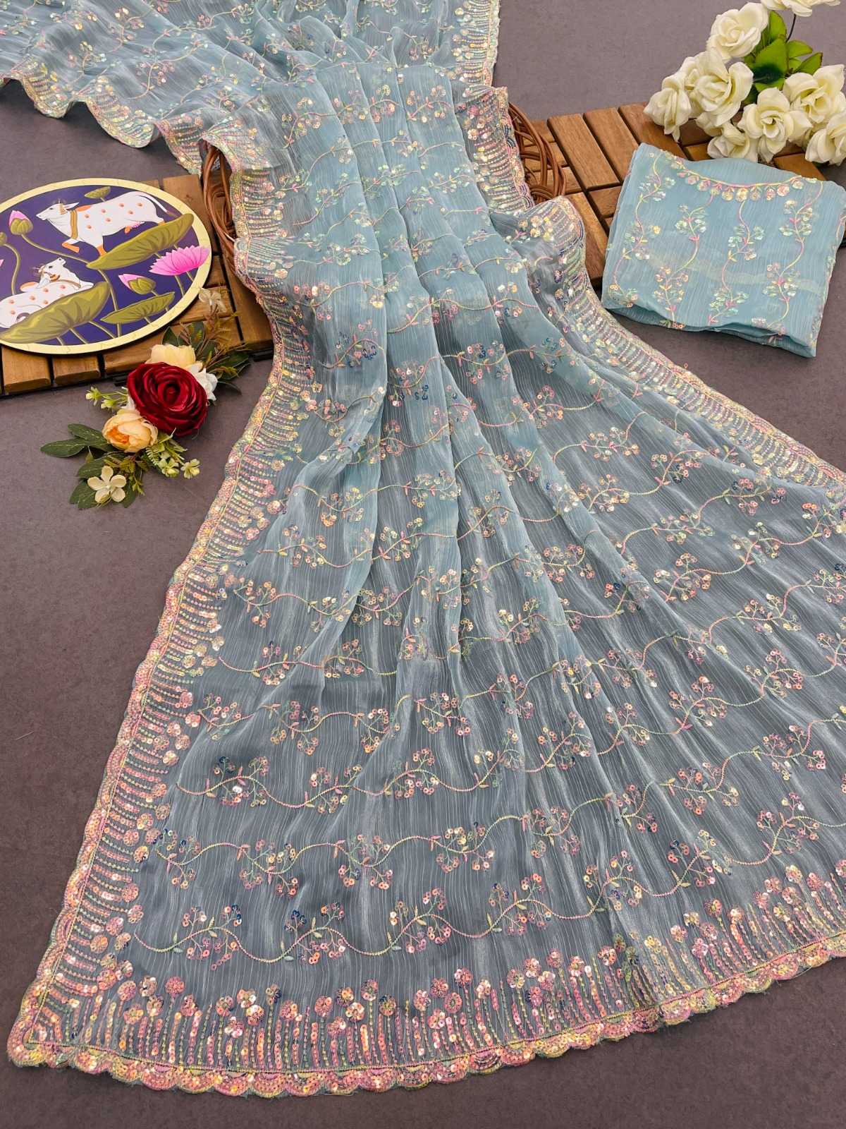 Looking for pr kc 823 jimmy chu zari embroidery work festive saree online exports Full Catalouge at Best Price? Buy Now pr kc 823 jimmy chu zari embroidery work festive saree online exports at Wholesale Rate of Rs 6245 with Total 5 Pcs from authroized dealer and supplier of P R Clothing Brand. Cost of Each piece is just only Rs 1249 which is very low and affordable price to resale the product in your retail store. rrgandhi is Surat based Wholesale Supplier & Dealer of P R Clothing Brand. Click on Brand name to Know more about Brand's products.