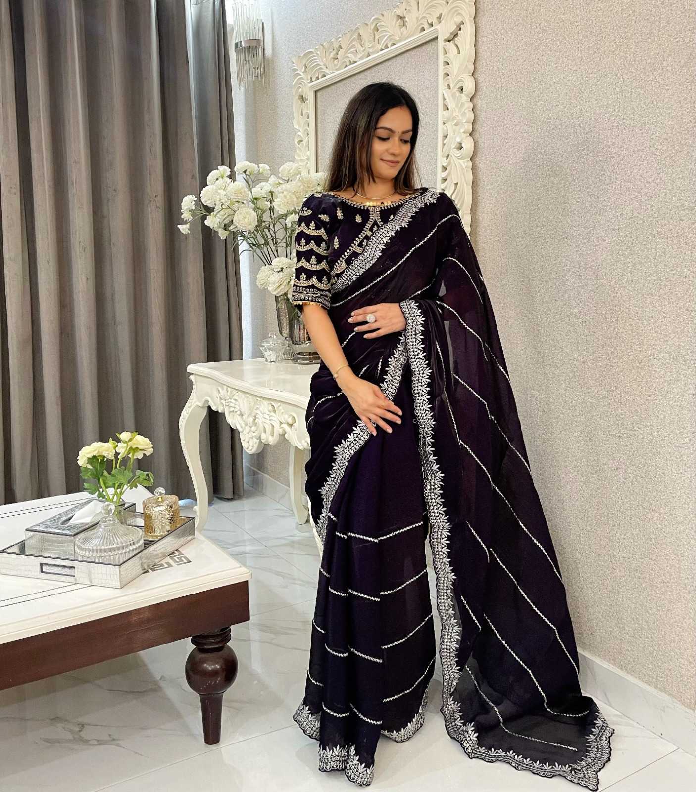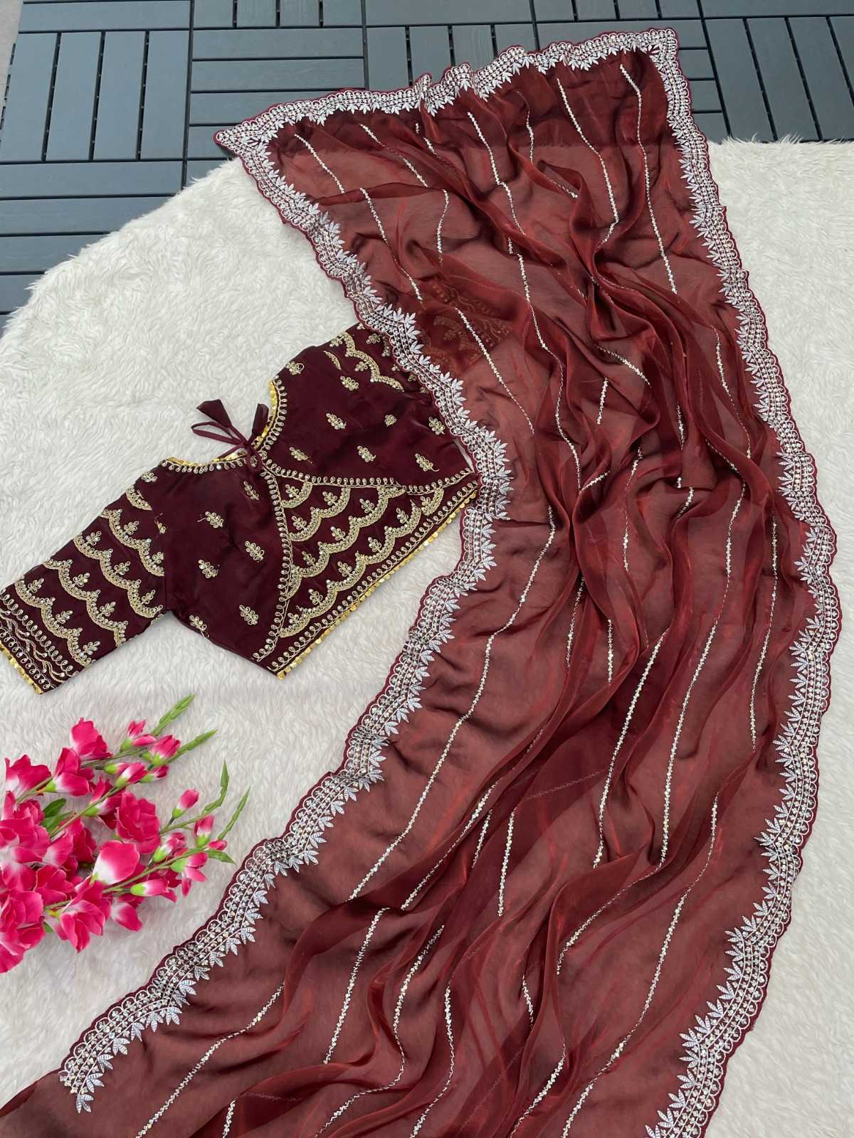 Looking for pr kc 829 launch jimmy chu silk fashionable embroidery work saree with blouse Full Catalouge at Best Price? Buy Now pr kc 829 launch jimmy chu silk fashionable embroidery work saree with blouse at Wholesale Rate of Rs 8743 with Total 7 Pcs from authroized dealer and supplier of P R Clothing Brand. Cost of Each piece is just only Rs 1249 which is very low and affordable price to resale the product in your retail store. rrgandhi is Surat based Wholesale Supplier & Dealer of P R Clothing Brand. Click on Brand name to Know more about Brand's products.