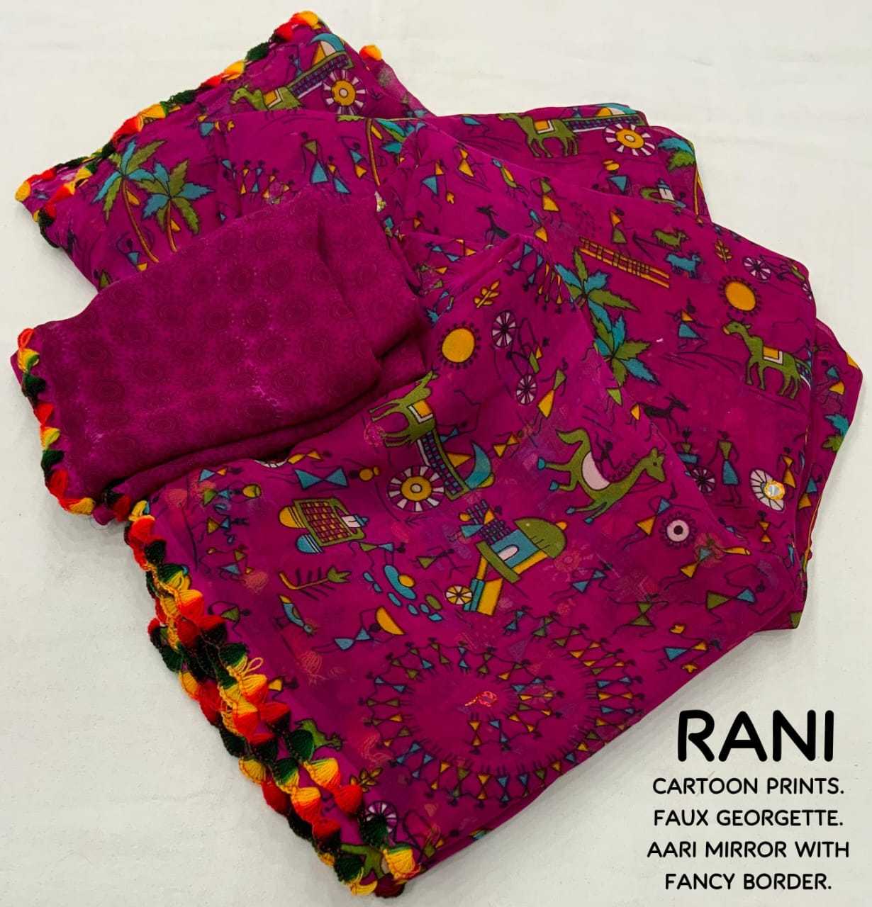Looking for pr kc cartoon stylish georgette saree for women Full Catalouge at Best Price? Buy Now pr kc cartoon stylish georgette saree for women at Wholesale Rate of Rs 3000 with Total 5 Pcs from authroized dealer and supplier of P R Clothing Brand. Cost of Each piece is just only Rs 600 which is very low and affordable price to resale the product in your retail store. rrgandhi is Surat based Wholesale Supplier & Dealer of P R Clothing Brand. Click on Brand name to Know more about Brand's products.