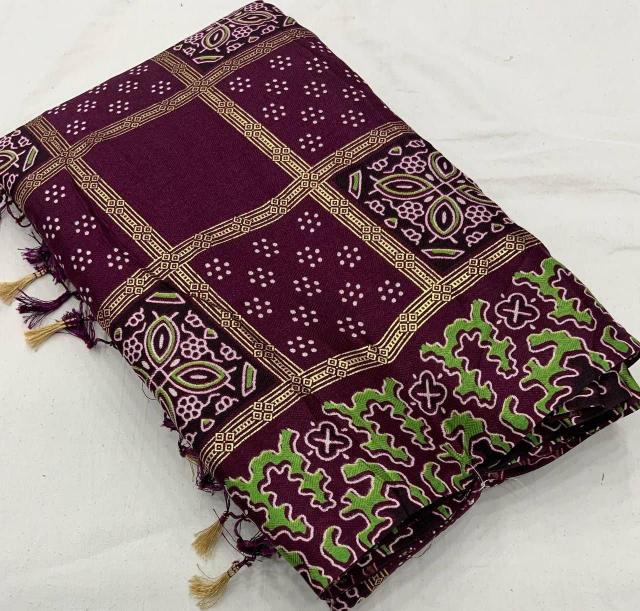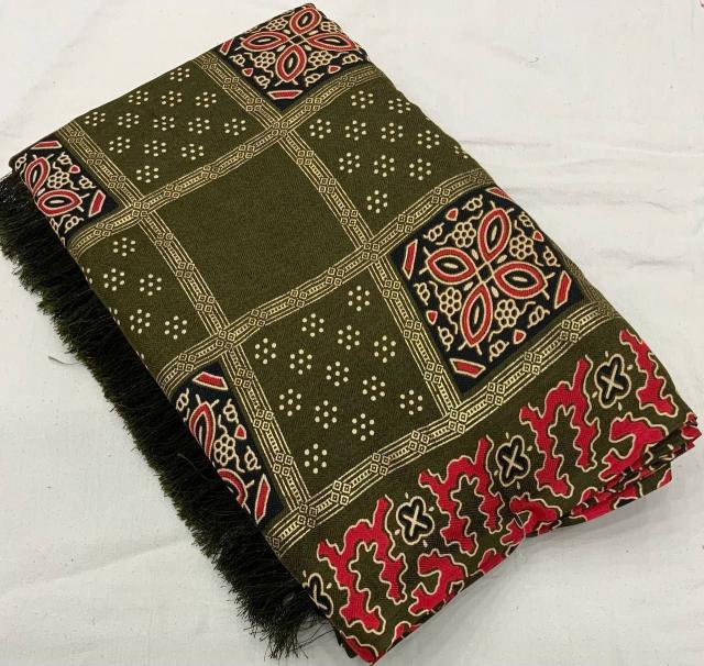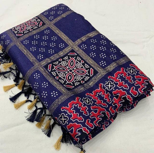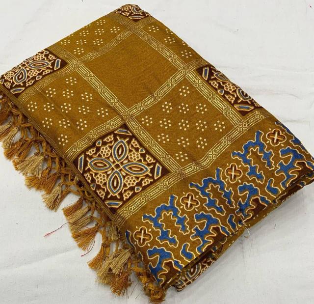 Looking for pr kc pashmina silk beautiful soft silk ajrakh style saree Full Catalouge at Best Price? Buy Now pr kc pashmina silk beautiful soft silk ajrakh style saree at Wholesale Rate of Rs 3840 with Total 6 Pcs from authroized dealer and supplier of P R Clothing Brand. Cost of Each piece is just only Rs 640 which is very low and affordable price to resale the product in your retail store. rrgandhi is Surat based Wholesale Supplier & Dealer of P R Clothing Brand. Click on Brand name to Know more about Brand's products.