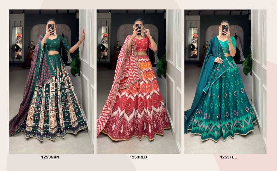 Looking for pr lnb1253 ethnic style vaishali silk semi stitch lehenga with unstitch blouse dupatta Full Catalouge at Best Price? Buy Now pr lnb1253 ethnic style vaishali silk semi stitch lehenga with unstitch blouse dupatta at Wholesale Rate of Rs 3450 with Total 3 Pcs from authroized dealer and supplier of P R Clothing Brand. Cost of Each piece is just only Rs 1150 which is very low and affordable price to resale the product in your retail store. rrgandhi is Surat based Wholesale Supplier & Dealer of P R Clothing Brand. Click on Brand name to Know more about Brand's products.