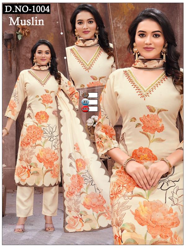Looking for pr muslin 1004-1006 readymade classic combo set salwar suit Full Catalouge at Best Price? Buy Now pr muslin 1004-1006 readymade classic combo set salwar suit at Wholesale Rate of Rs 4440 with Total 6 Pcs from authroized dealer and supplier of P R Clothing Brand. Cost of Each piece is just only Rs 740 which is very low and affordable price to resale the product in your retail store. rrgandhi is Surat based Wholesale Supplier & Dealer of P R Clothing Brand. Click on Brand name to Know more about Brand's products.