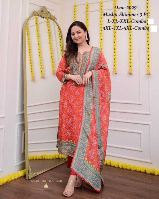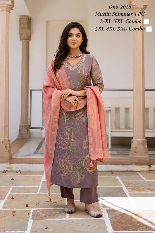 Looking for pr muslin shimmer 2026,2029 popular design fully stitch combo suit for ladies Full Catalouge at Best Price? Buy Now pr muslin shimmer 2026,2029 popular design fully stitch combo suit for ladies at Wholesale Rate of Rs 17730 with Total 18 Pcs from authroized dealer and supplier of P R Clothing Brand. Cost of Each piece is just only Rs 985 which is very low and affordable price to resale the product in your retail store. rrgandhi is Surat based Wholesale Supplier & Dealer of P R Clothing Brand. Click on Brand name to Know more about Brand's products.