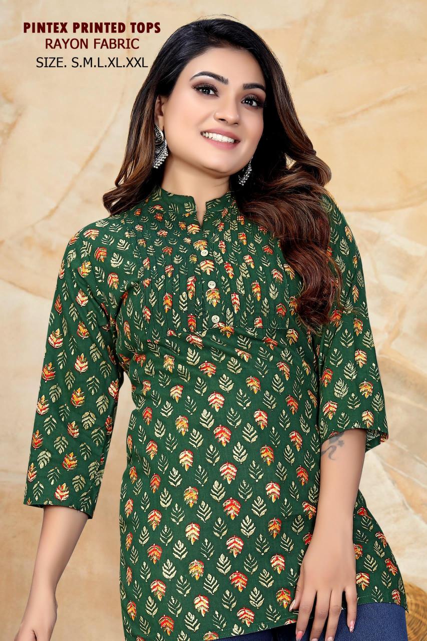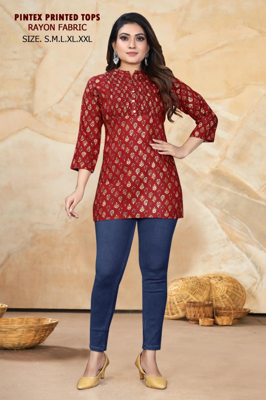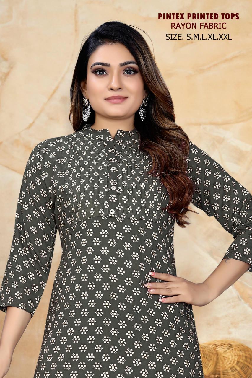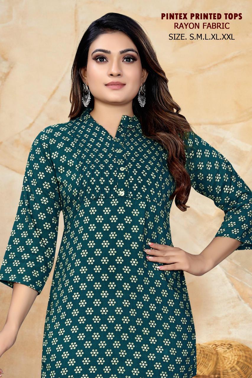 pr pintex printed regular wear fully stitch rayon short kurtis supplier