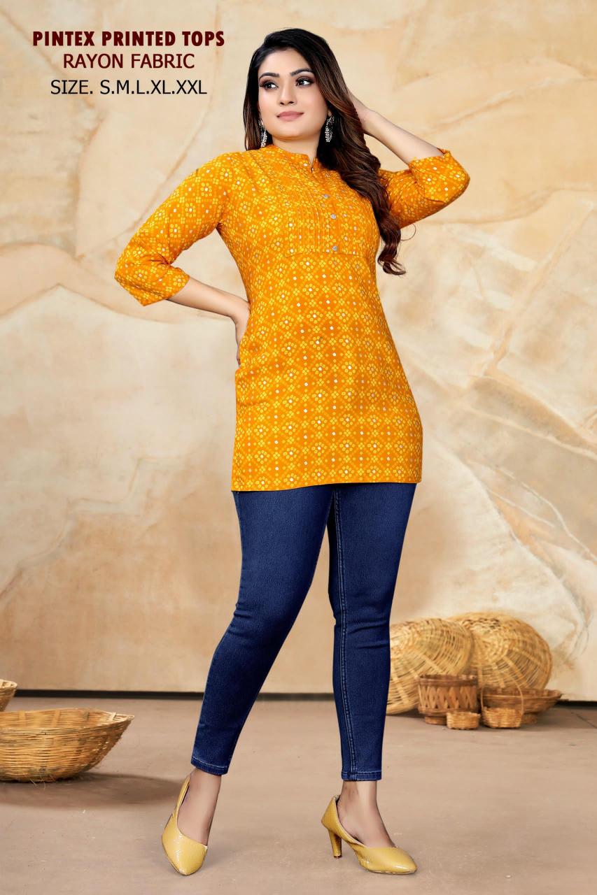 Buy Online pr pintex printed regular wear fully stitch rayon short kurtis supplier 6 Pcs of Full Catalogue at Wholesale Price.