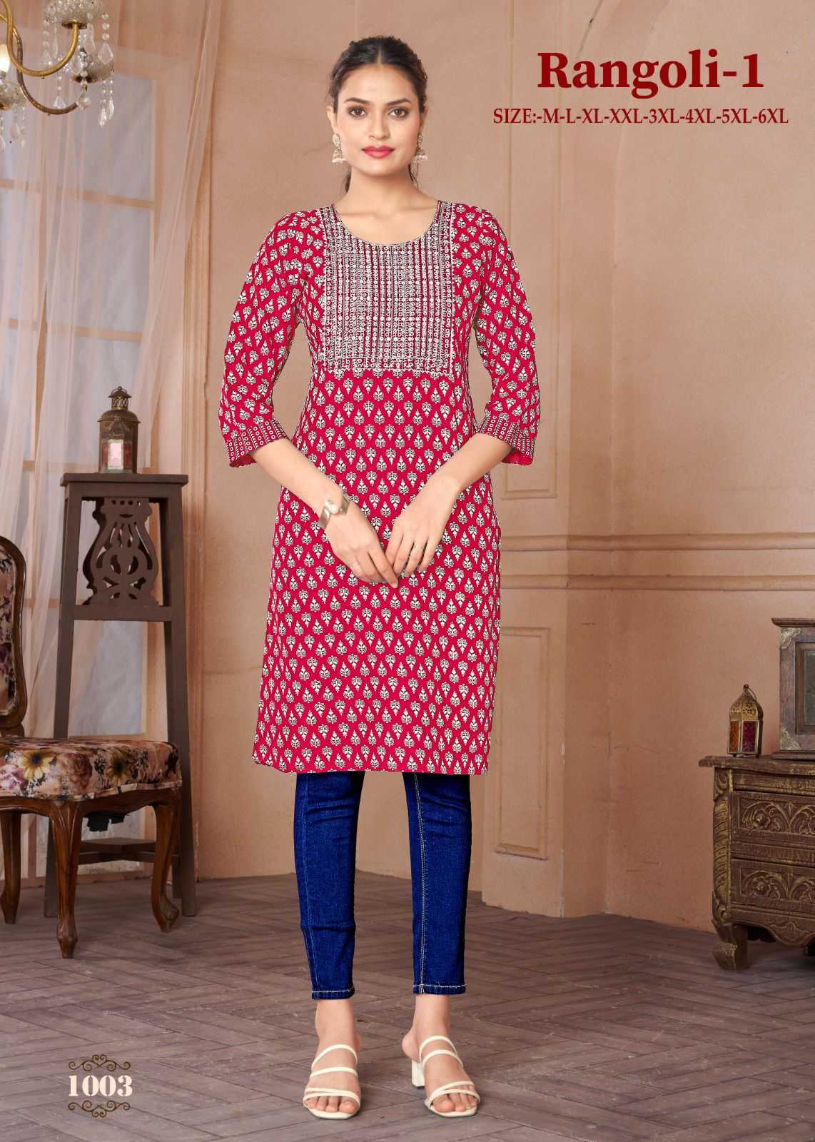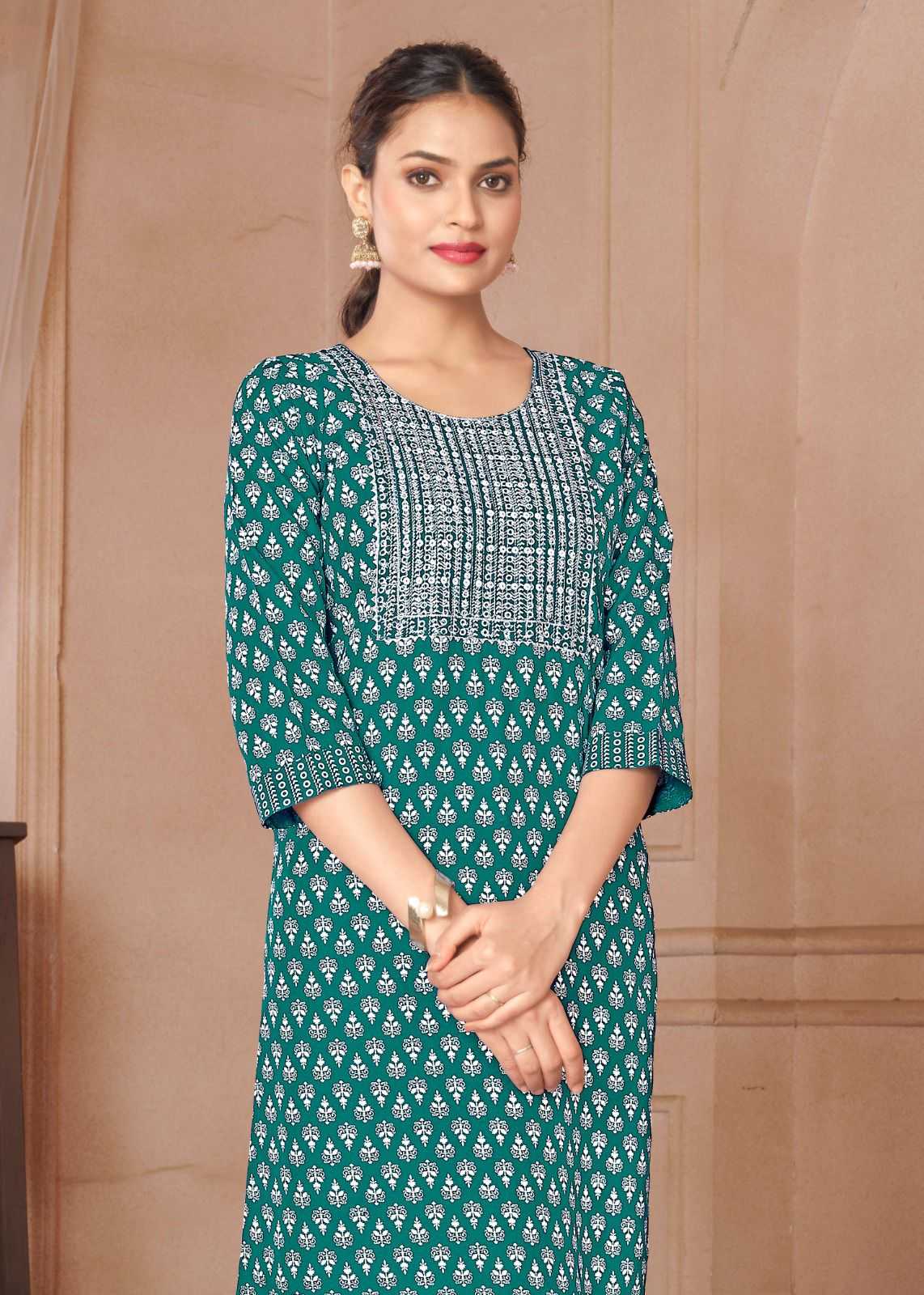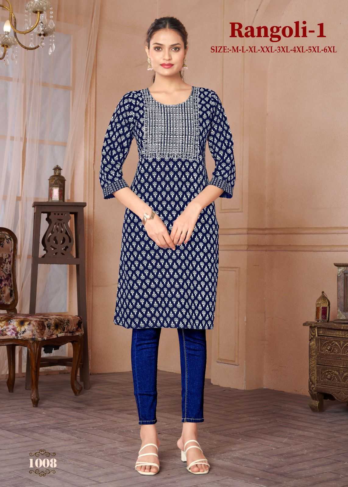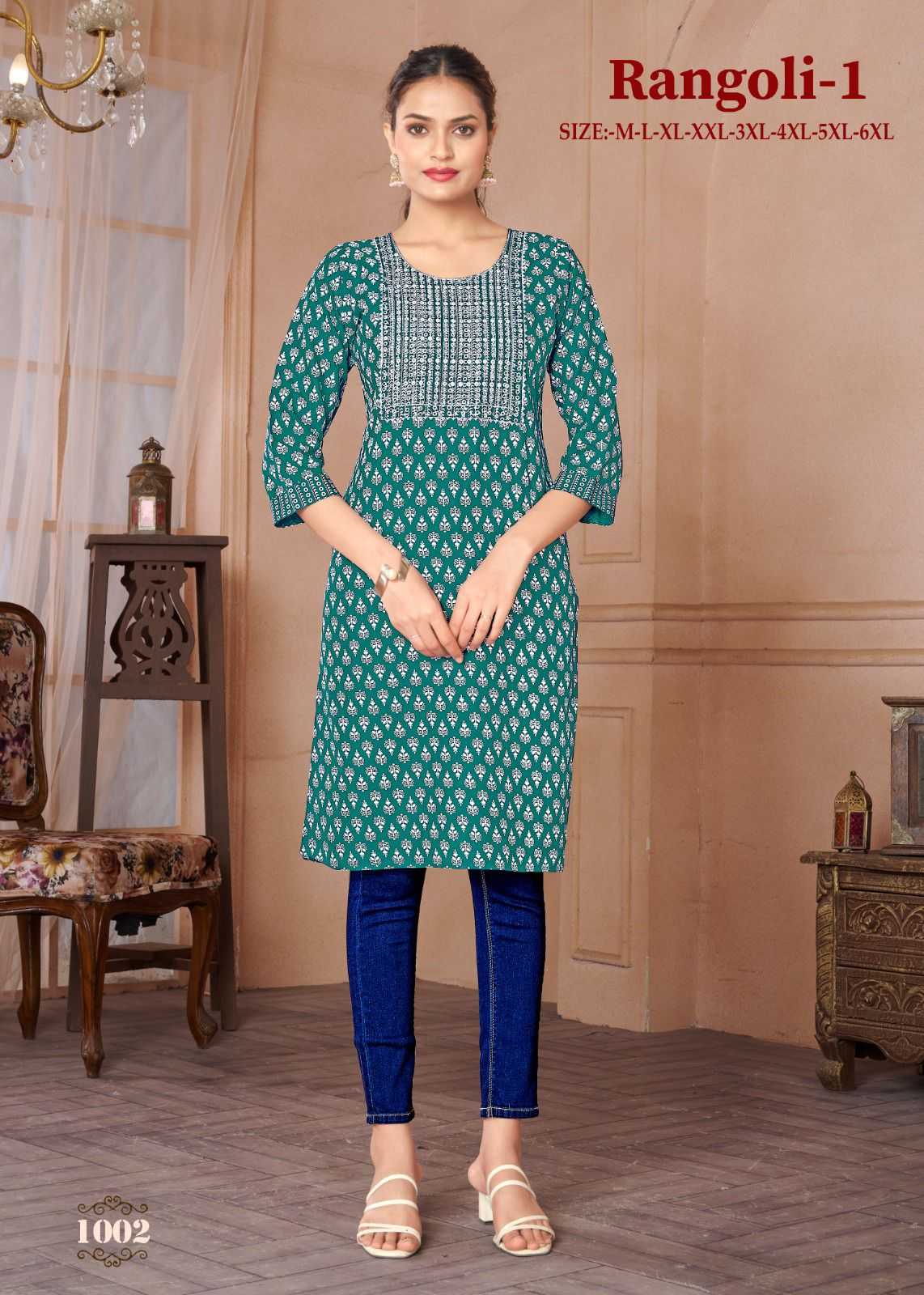 Looking for pr rangoli vol 1 regular wear readymade rayon kurti Full Catalouge at Best Price? Buy Now pr rangoli vol 1 regular wear readymade rayon kurti at Wholesale Rate of Rs 2400 with Total 8 Pcs from authroized dealer and supplier of P R Clothing Brand. Cost of Each piece is just only Rs 300 which is very low and affordable price to resale the product in your retail store. rrgandhi is Surat based Wholesale Supplier & Dealer of P R Clothing Brand. Click on Brand name to Know more about Brand's products.