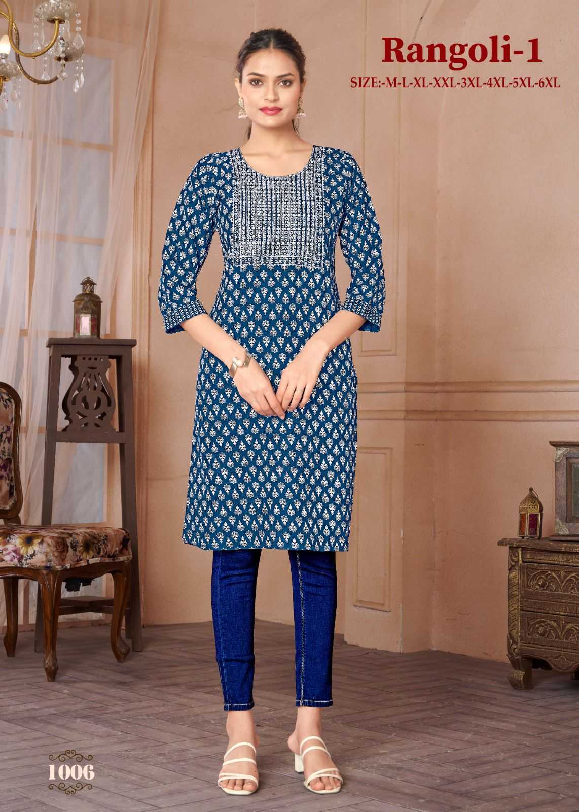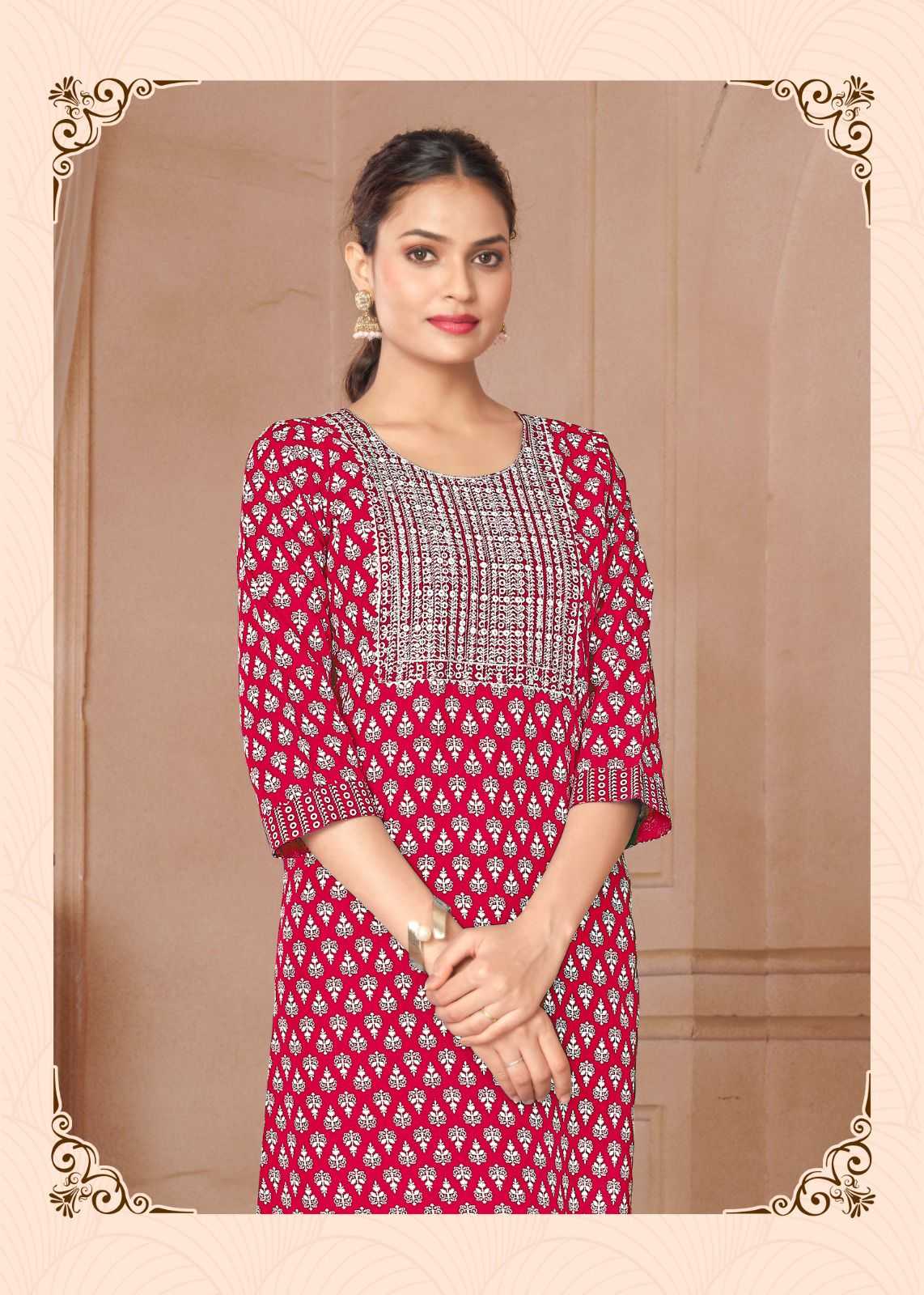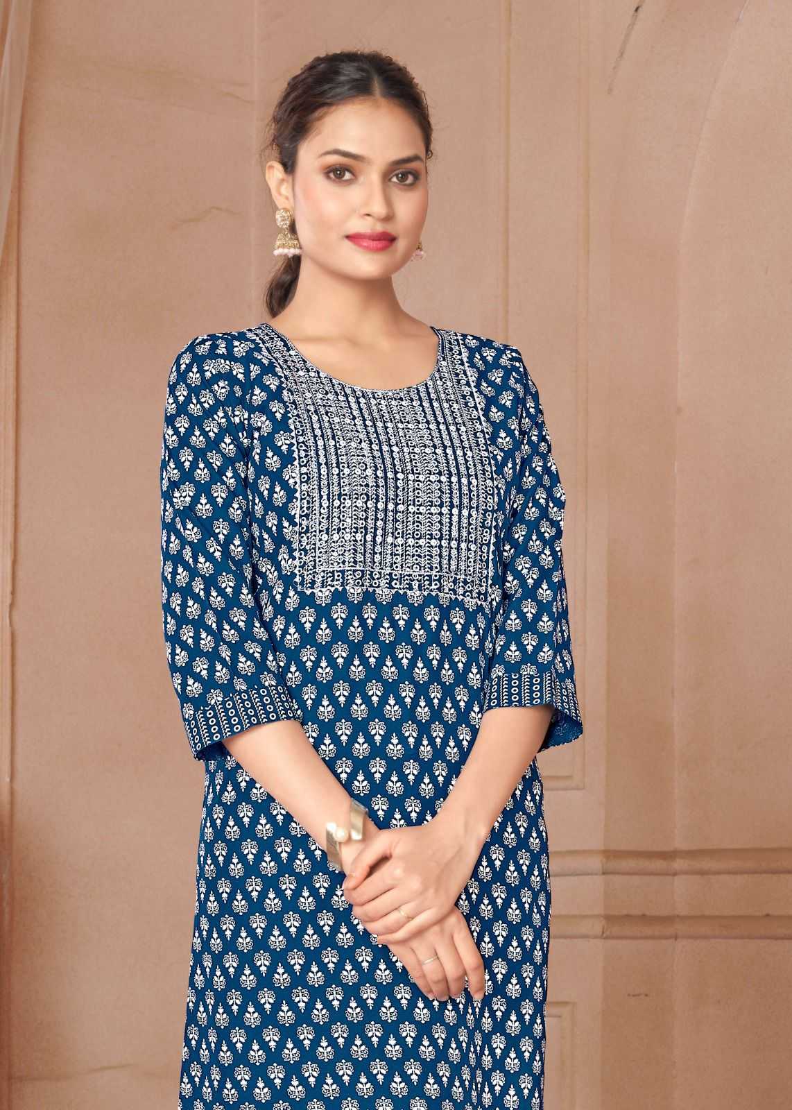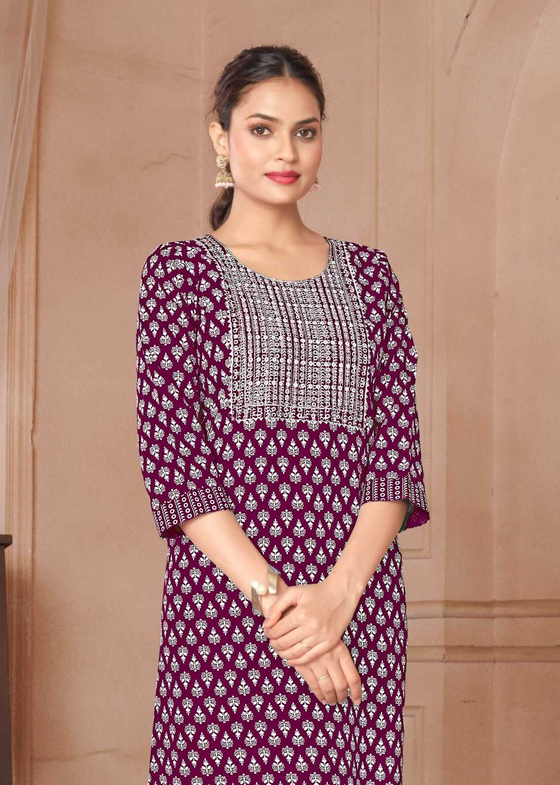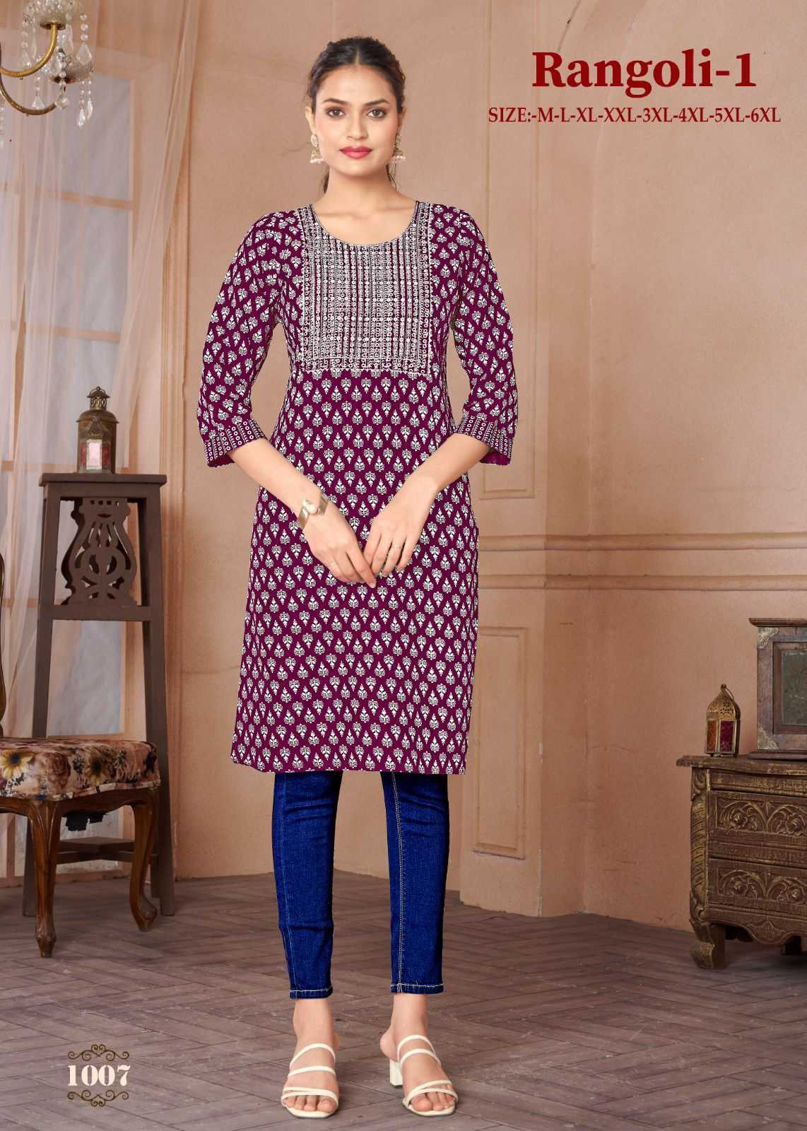 Looking for pr rangoli vol 1 regular wear readymade rayon kurti Full Catalouge at Best Price? Buy Now pr rangoli vol 1 regular wear readymade rayon kurti at Wholesale Rate of Rs 2400 with Total 8 Pcs from authroized dealer and supplier of P R Clothing Brand. Cost of Each piece is just only Rs 300 which is very low and affordable price to resale the product in your retail store. rrgandhi is Surat based Wholesale Supplier & Dealer of P R Clothing Brand. Click on Brand name to Know more about Brand's products.