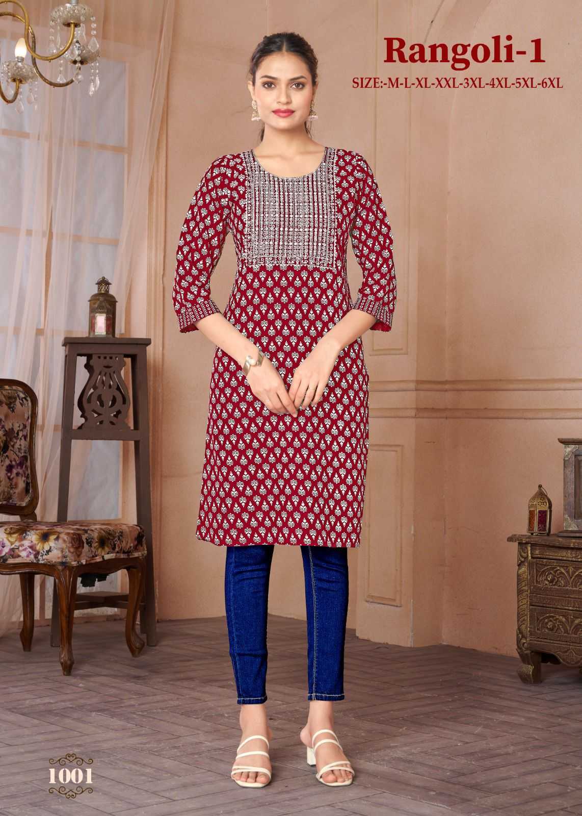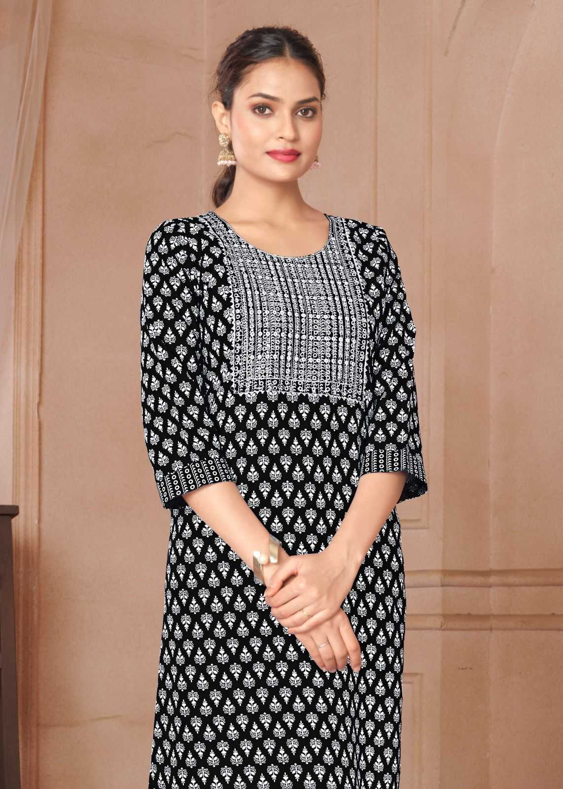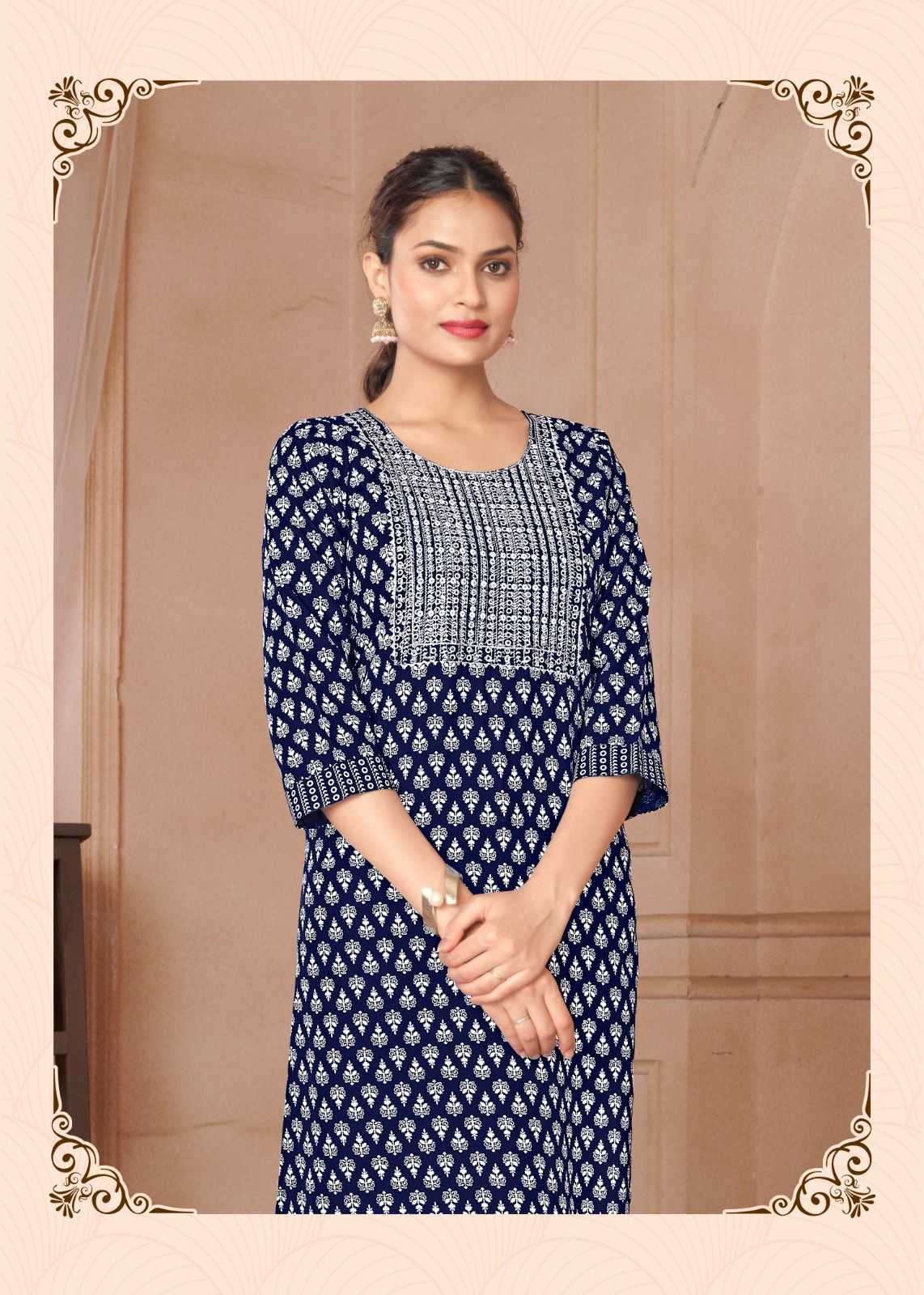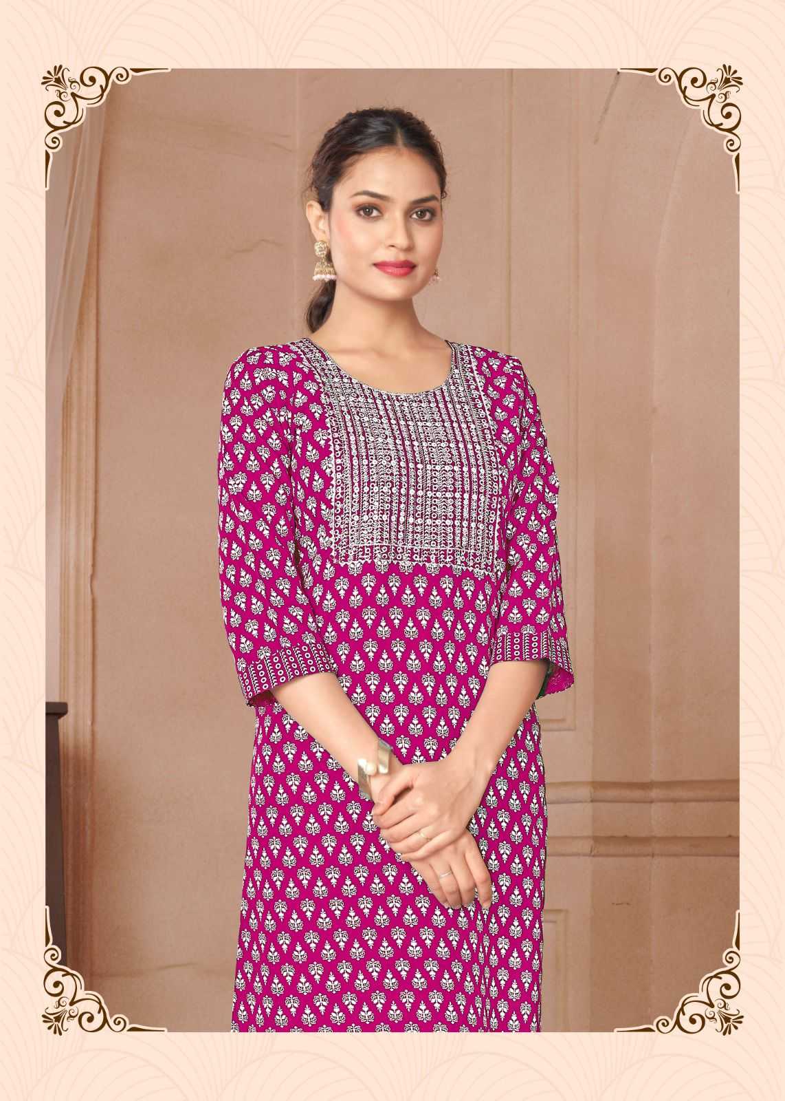 Looking for pr rangoli vol 1 regular wear readymade rayon kurti Full Catalouge at Best Price? Buy Now pr rangoli vol 1 regular wear readymade rayon kurti at Wholesale Rate of Rs 2400 with Total 8 Pcs from authroized dealer and supplier of P R Clothing Brand. Cost of Each piece is just only Rs 300 which is very low and affordable price to resale the product in your retail store. rrgandhi is Surat based Wholesale Supplier & Dealer of P R Clothing Brand. Click on Brand name to Know more about Brand's products.