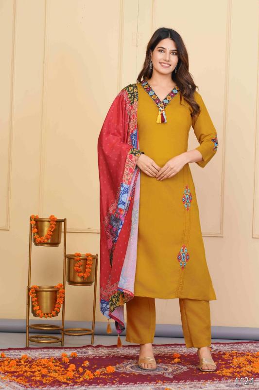 Looking for pr tanisha vol 17 viscose chanderi readymade modern salwar kameez Full Catalouge at Best Price? Buy Now pr tanisha vol 17 viscose chanderi readymade modern salwar kameez at Wholesale Rate of Rs 11110 with Total 11 Pcs from authroized dealer and supplier of P R Clothing Brand. Cost of Each piece is just only Rs 1010 which is very low and affordable price to resale the product in your retail store. rrgandhi is Surat based Wholesale Supplier & Dealer of P R Clothing Brand. Click on Brand name to Know more about Brand's products.
