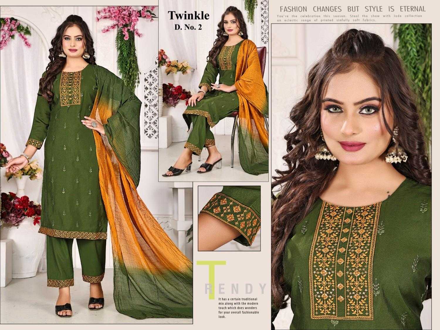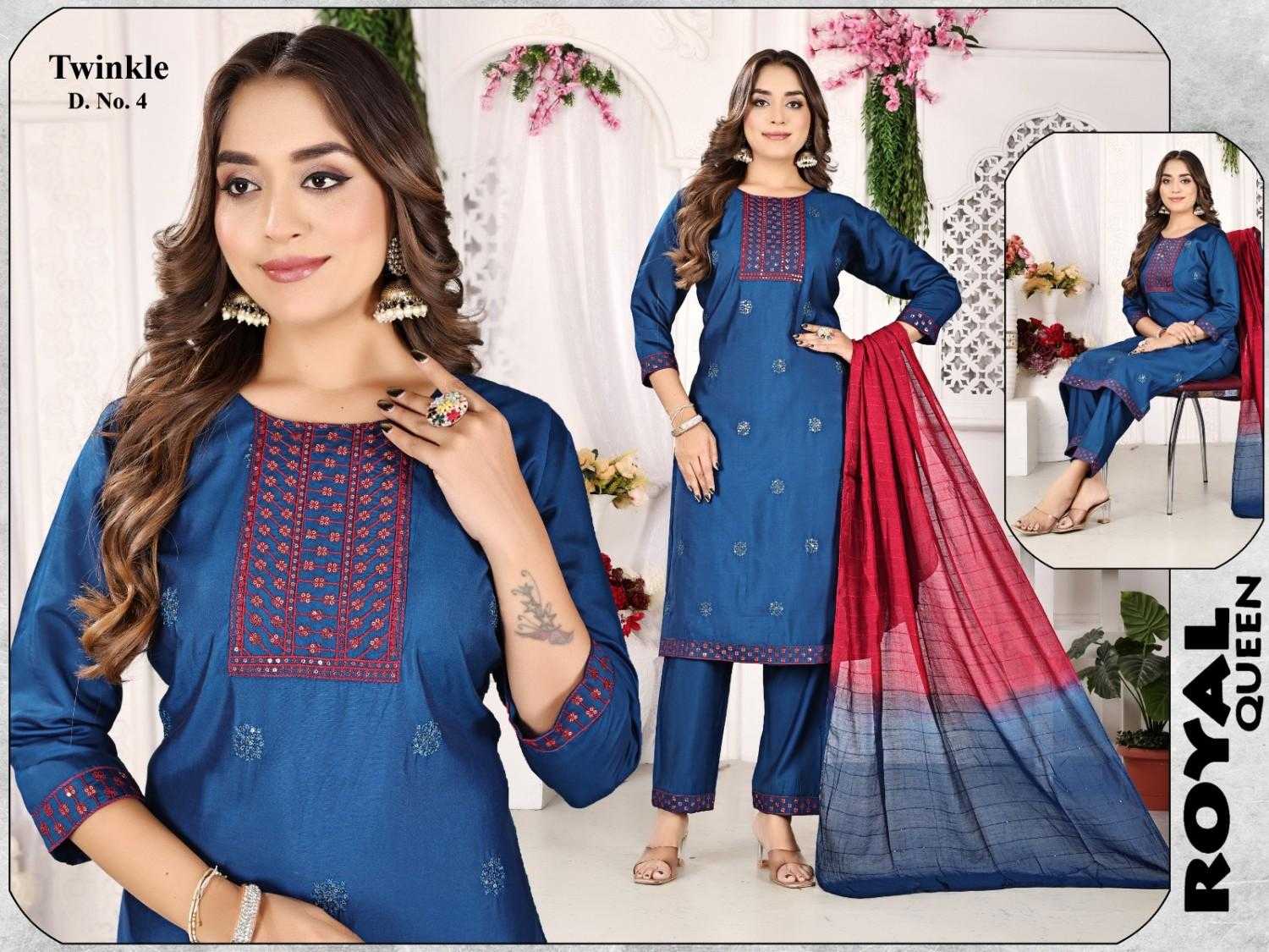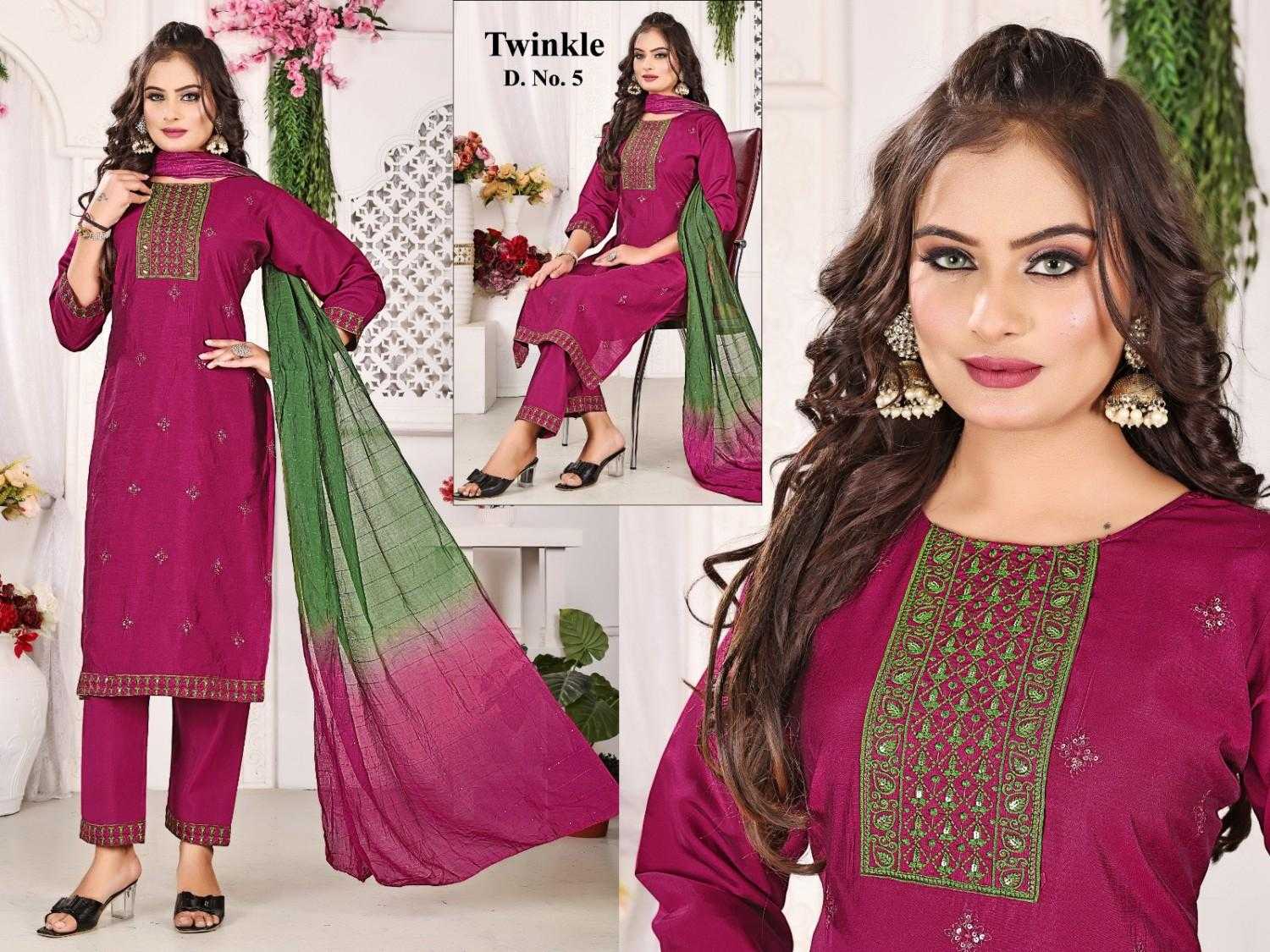 Looking for pr twinkle readymade roman silk regular wear stylish 3pcs dress Full Catalouge at Best Price? Buy Now pr twinkle readymade roman silk regular wear stylish 3pcs dress at Wholesale Rate of Rs 3400 with Total 5 Pcs from authroized dealer and supplier of P R Clothing Brand. Cost of Each piece is just only Rs 680 which is very low and affordable price to resale the product in your retail store. rrgandhi is Surat based Wholesale Supplier & Dealer of P R Clothing Brand. Click on Brand name to Know more about Brand's products.
