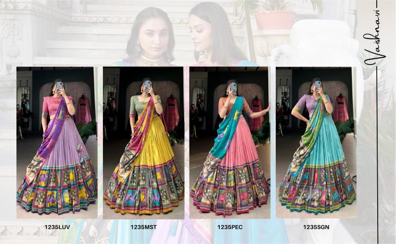 Looking for pr vaishnavi lnb1235 tussar silk kalamkari foil work stitch lehenga unstitch choli festive look Full Catalouge at Best Price? Buy Now pr vaishnavi lnb1235 tussar silk kalamkari foil work stitch lehenga unstitch choli festive look at Wholesale Rate of Rs 5600 with Total 4 Pcs from authroized dealer and supplier of P R Clothing Brand. Cost of Each piece is just only Rs 1400 which is very low and affordable price to resale the product in your retail store. rrgandhi is Surat based Wholesale Supplier & Dealer of P R Clothing Brand. Click on Brand name to Know more about Brand's products.