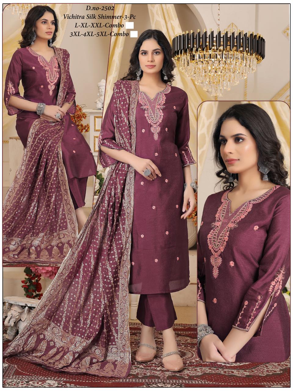 Looking for pr vichitra silk fully stitch shimmer classic combo 3pcs online Full Catalouge at Best Price? Buy Now pr vichitra silk fully stitch shimmer classic combo 3pcs online at Wholesale Rate of Rs 24480 with Total 24 Pcs from authroized dealer and supplier of P R Clothing Brand. Cost of Each piece is just only Rs 1020 which is very low and affordable price to resale the product in your retail store. rrgandhi is Surat based Wholesale Supplier & Dealer of P R Clothing Brand. Click on Brand name to Know more about Brand's products.