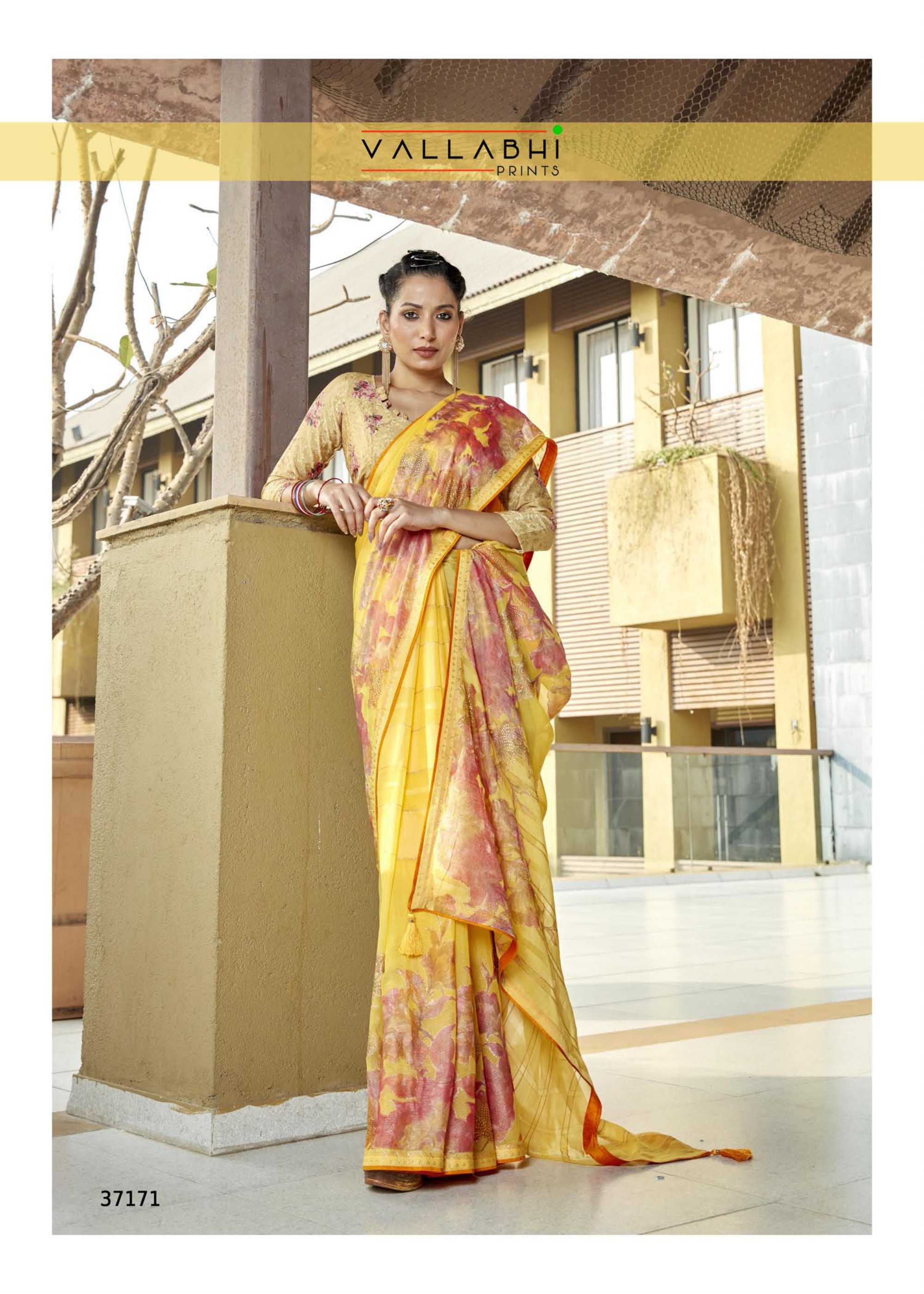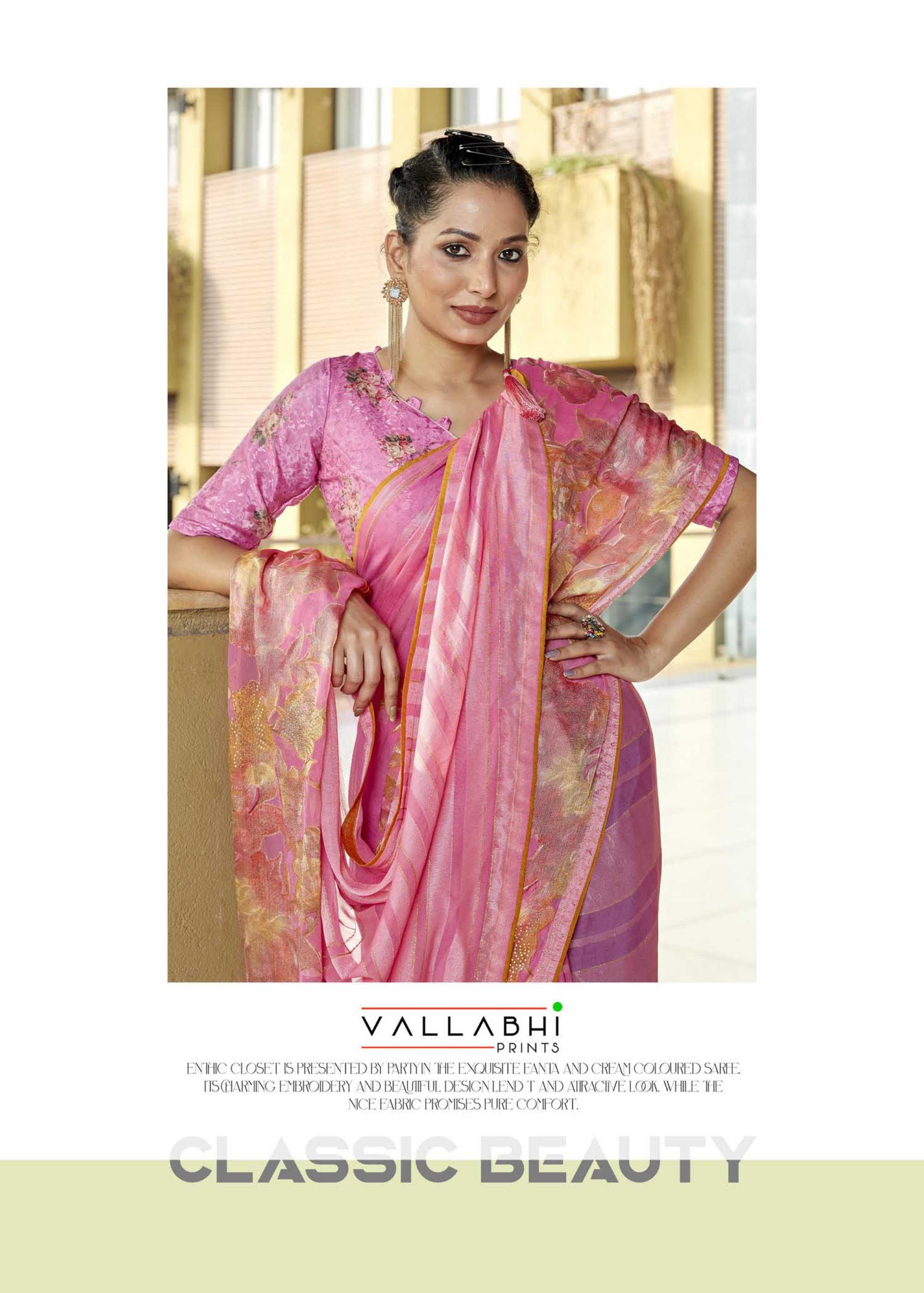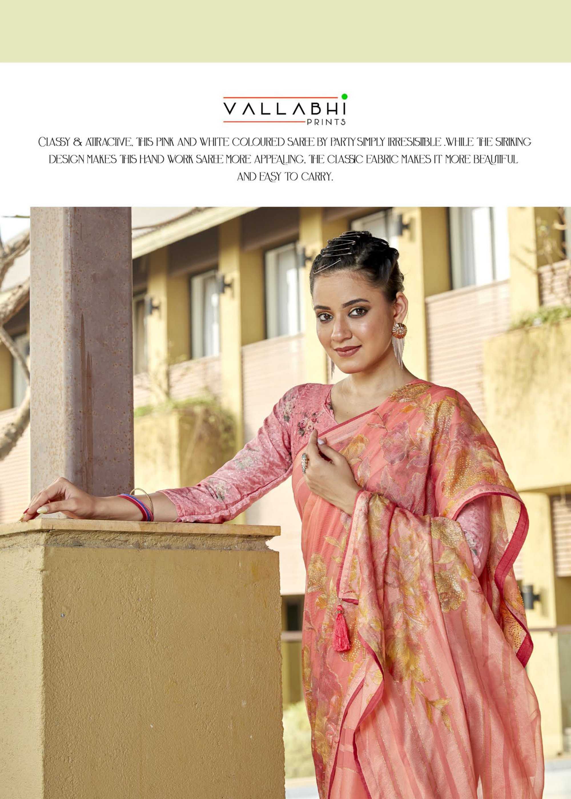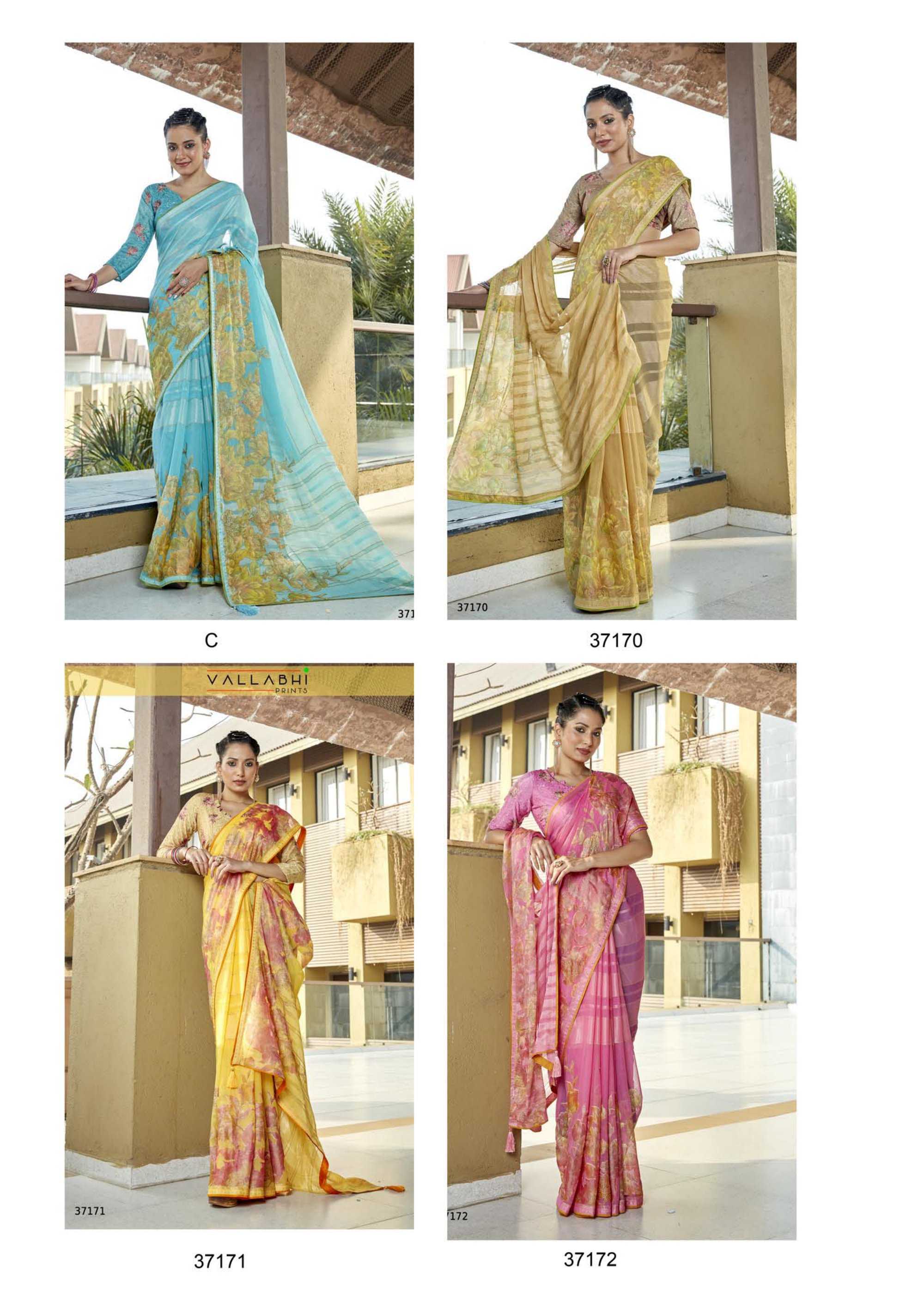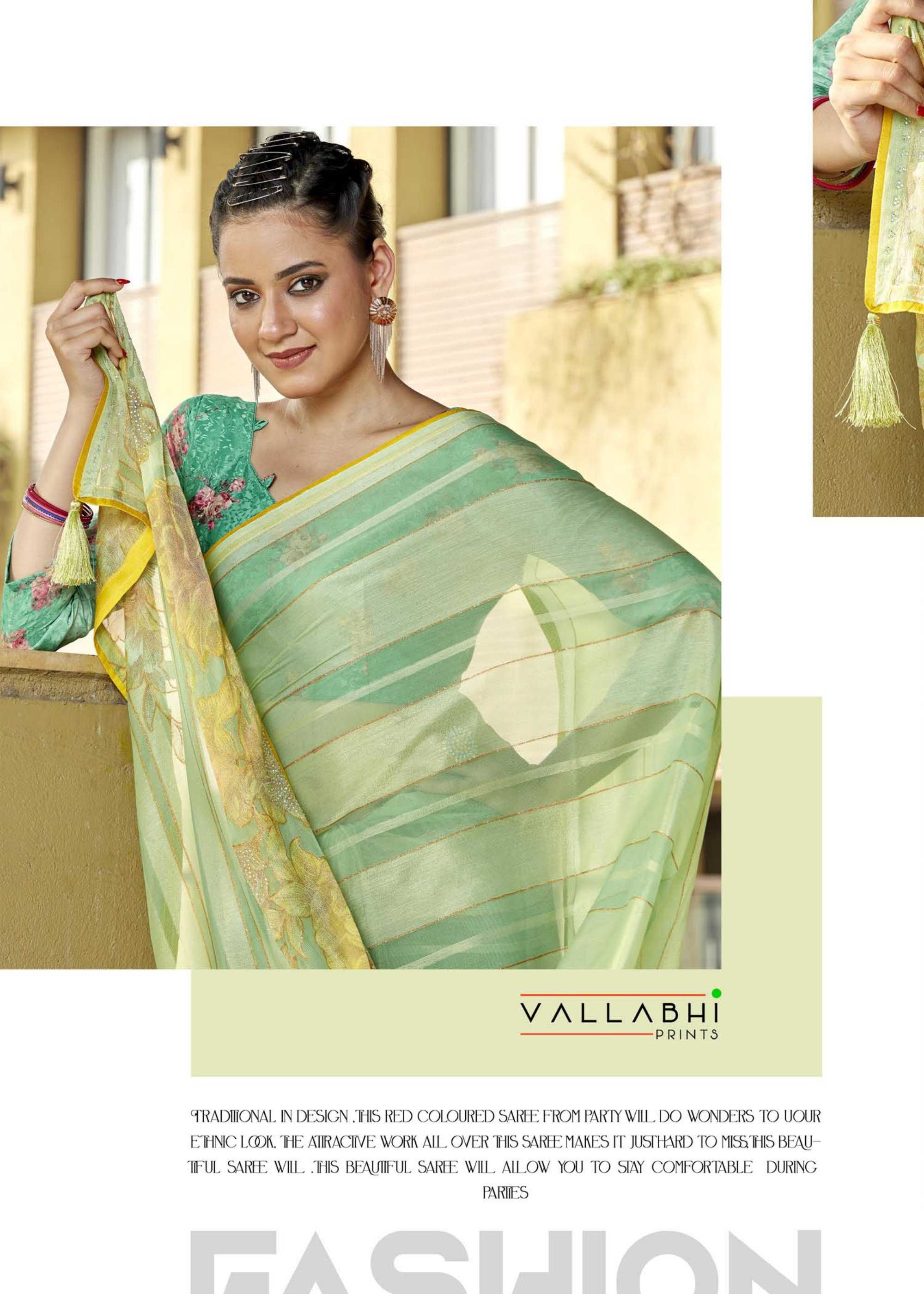 Looking for praniti by vallabhi prints beautiful look daily wear fancy georgette saree Full Catalouge at Best Price? Buy Now praniti by vallabhi prints beautiful look daily wear fancy georgette saree at Wholesale Rate of Rs 7200 with Total 8 Pcs from authroized dealer and supplier of Vallabhi Prints Brand. Cost of Each piece is just only Rs 900 which is very low and affordable price to resale the product in your retail store. rrgandhi is Surat based Wholesale Supplier & Dealer of Vallabhi Prints Brand. Click on Brand name to Know more about Brand's products.