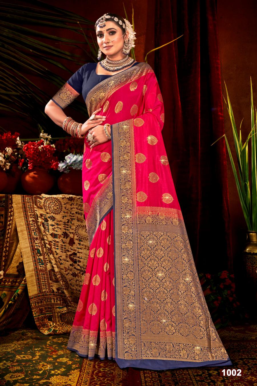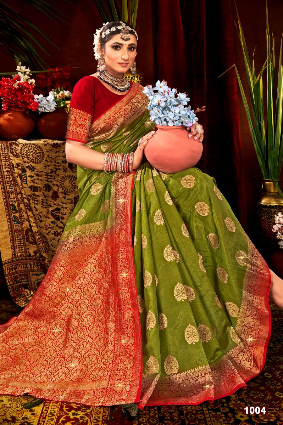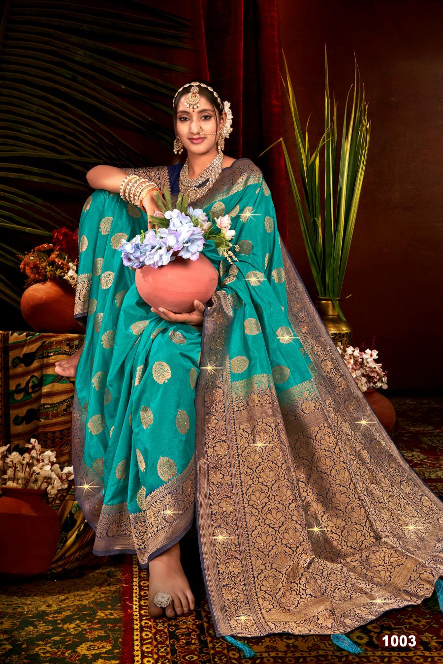 Looking for Prapti dola sarovsk Saroj vol.1 soft dola silk saree Full Catalouge at Best Price? Buy Now Prapti dola sarovsk Saroj vol.1 soft dola silk saree at Wholesale Rate of Rs 5010 with Total 6 Pcs from authroized dealer and supplier of Saroj Textiles Brand. Cost of Each piece is just only Rs 835 which is very low and affordable price to resale the product in your retail store. rrgandhi is Surat based Wholesale Supplier & Dealer of Saroj Textiles Brand. Click on Brand name to Know more about Brand's products.